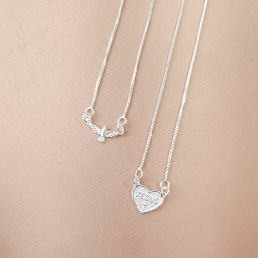 Escapulário Espírito Santo e Coração de Jesus em Prata 925 Pura