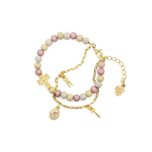 Pulseira Nossa Senhora de La Salette – Tons Rosé com Corrente Dourada