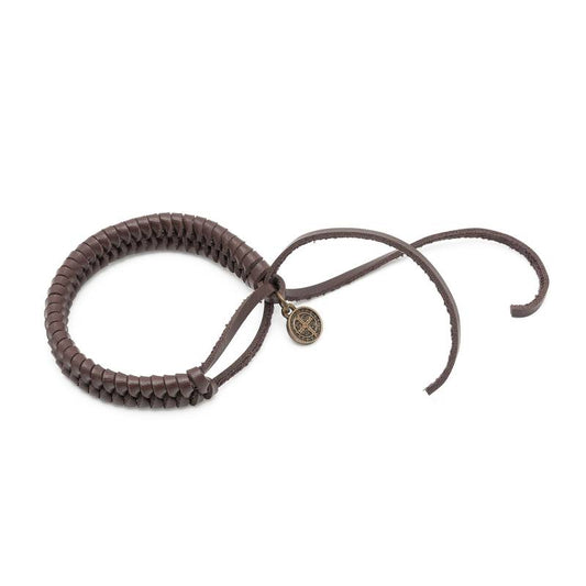 Pulseira São Bento em Couro Trançado – Marrom Escuro (Regulável)