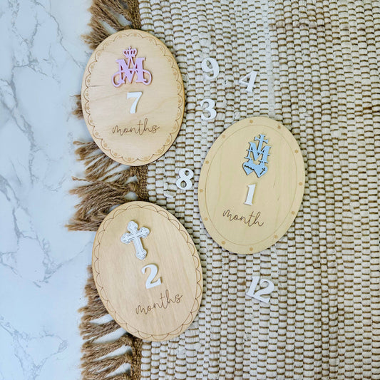 Auspice Maria Catholic Baby Monthly Milestone Card