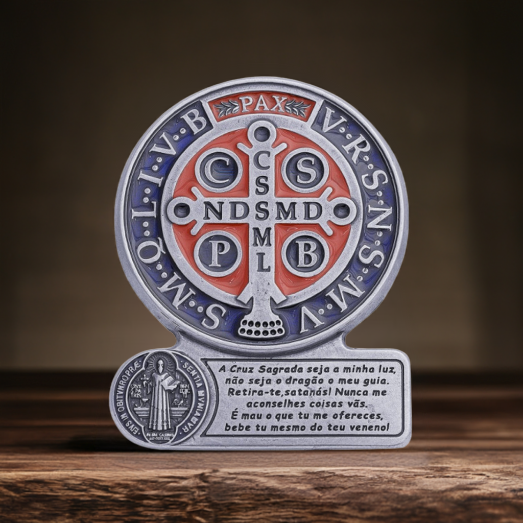 Beautiful object of faith and devotion ๐, perfect for decorating your space and inspiring moments of prayer! Made of metal ๐๏ธ, this ornament features the Medal of Saint Benedict with his powerful prayer โ๏ธ. Its design combines unique artistic features ๐จ, classic style ๐ฐ๏ธ and modern elements ๐, conveying beauty and refinement without losing its deep connection with spirituality ๐.