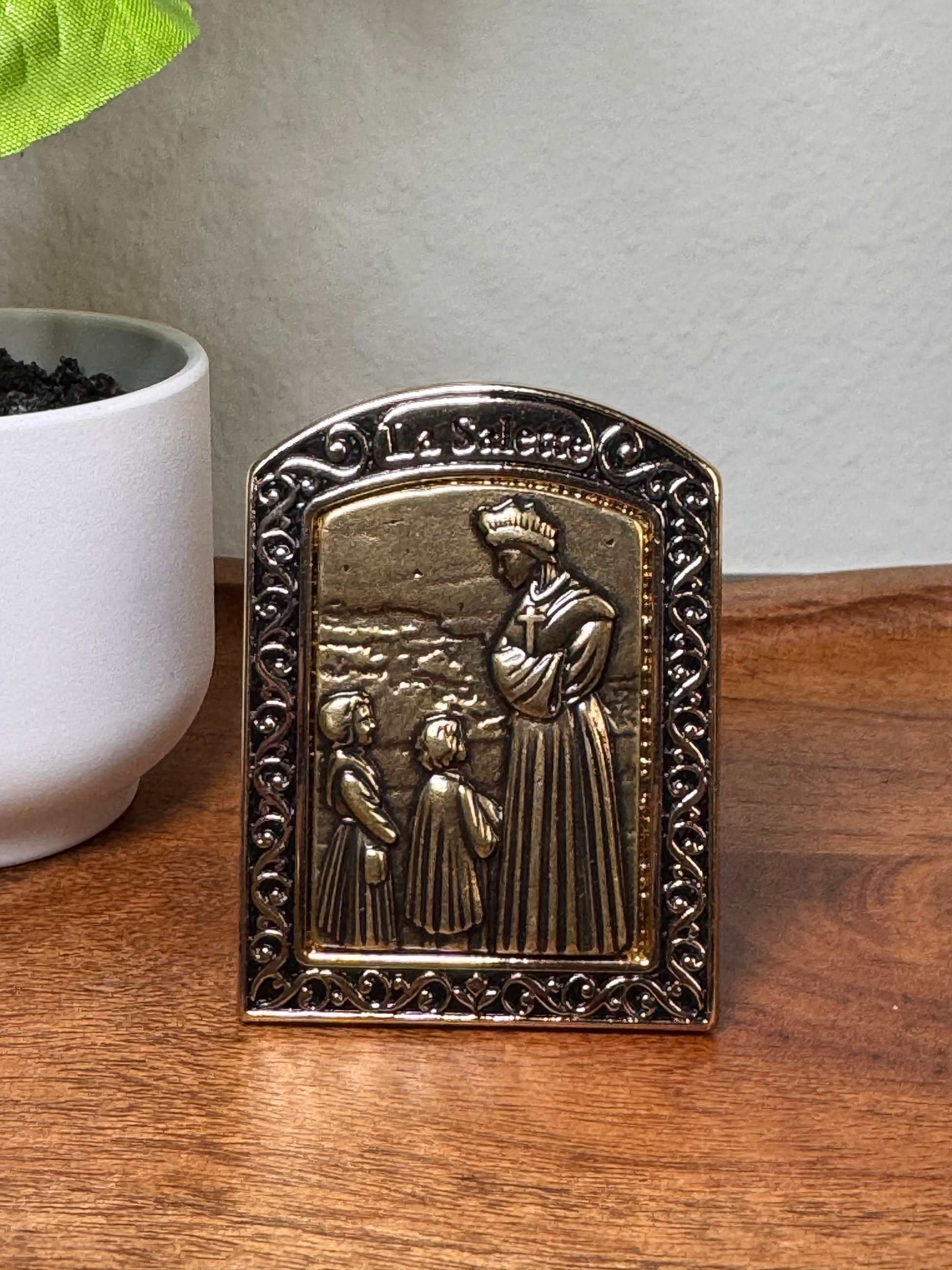 This beautiful Our Lady of La Salette ornament is a refined piece full of meaning for your devotion. Made of high-quality metal, it stands out for its detailed finish and durability, making it ideal for use on altars, prayer environments or as a special gift for devotees.