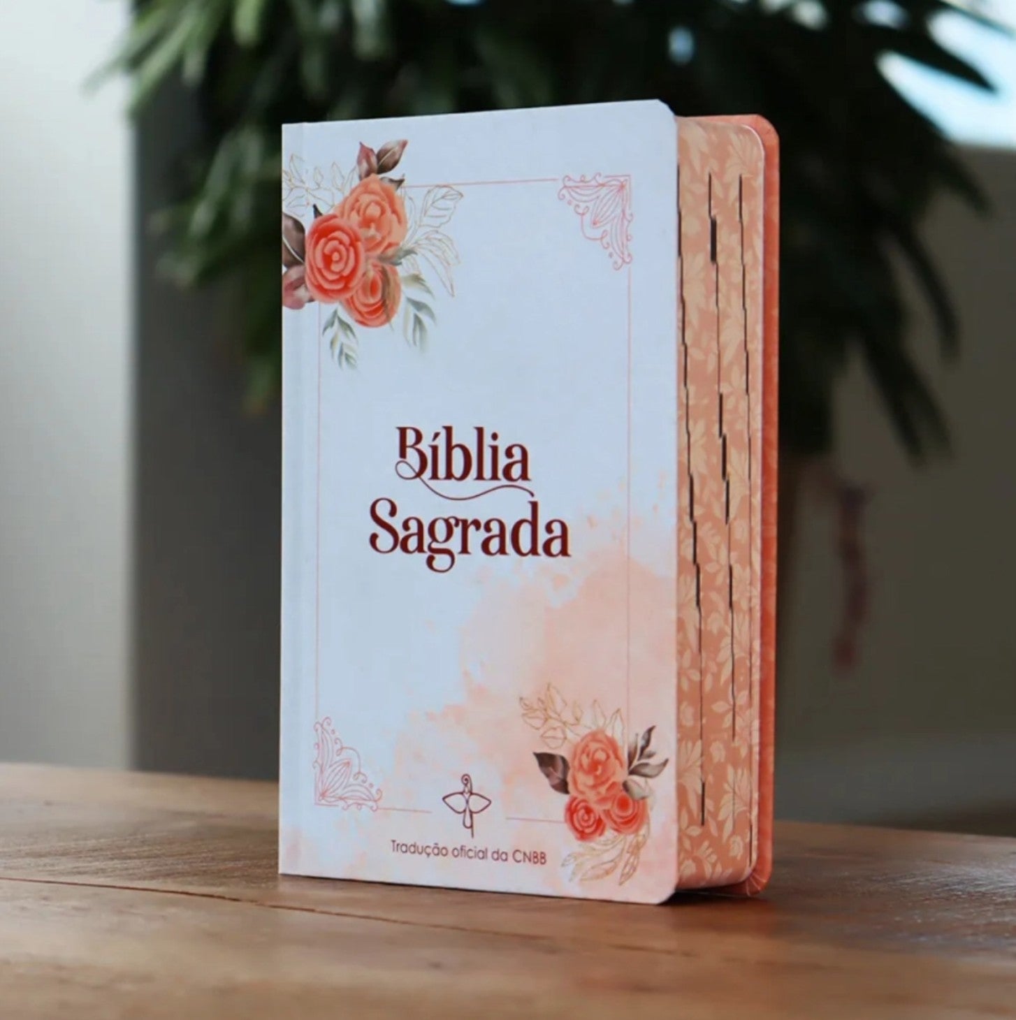 With a soft salmon-colored cover, refined finish, and artistic details, this model combines beauty and editorial quality. Ideal for study, daily prayer, or as a gift for someone special.