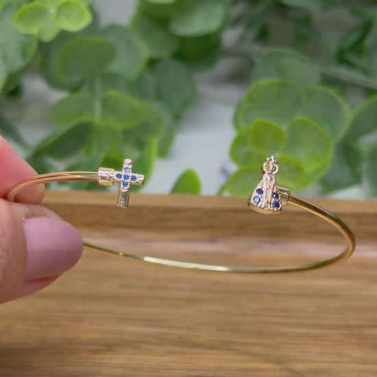 O Bracelete Manto de Amor traz a imagem de Nossa Senhora Aparecida com delicados detalhes em zircônias azuis — representando o seu manto sagrado que cobre de amor e proteção todos os seus filhos.