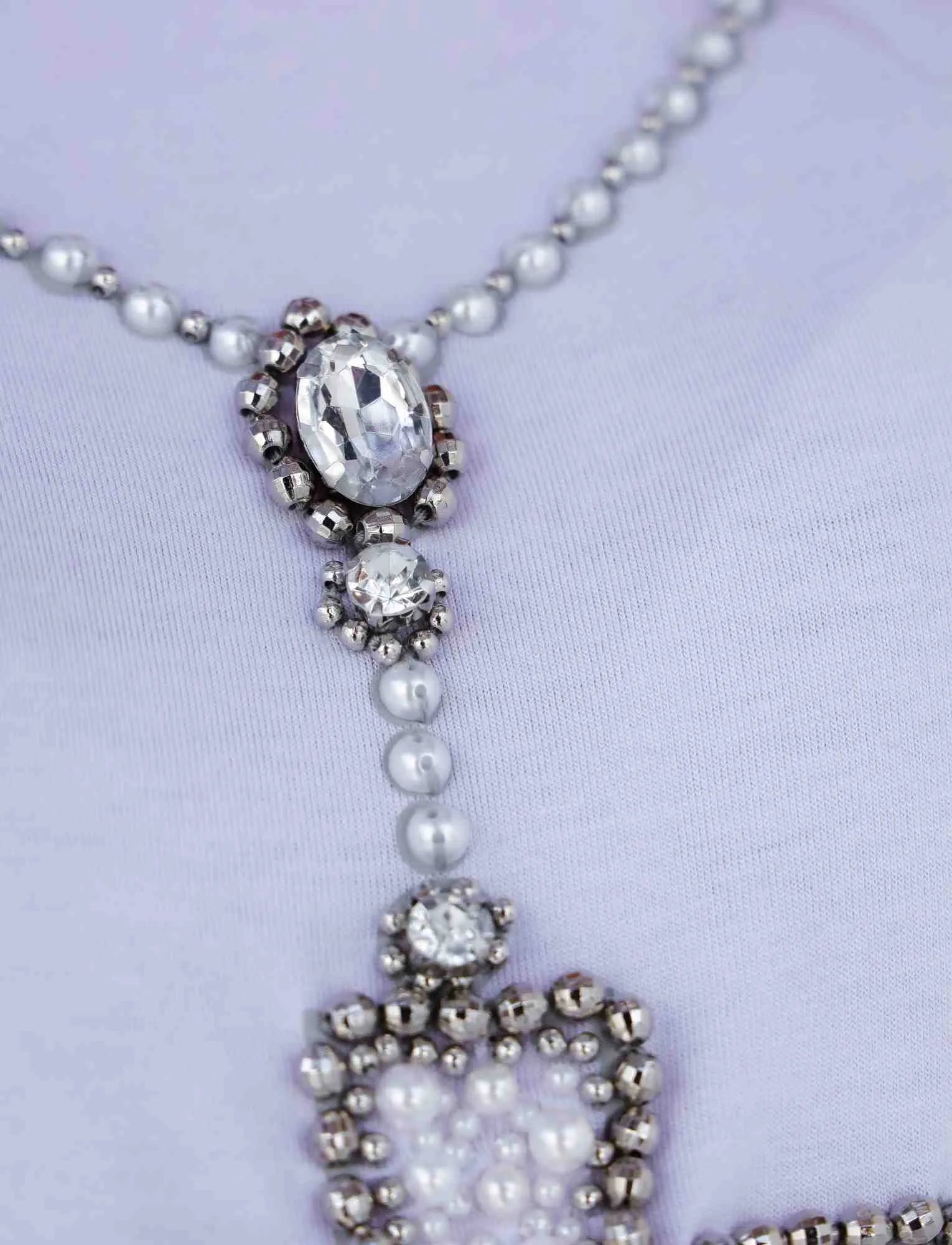 Hand Embroidered New Year's Eve Rosary Cross T-Shirt with Rhinestones