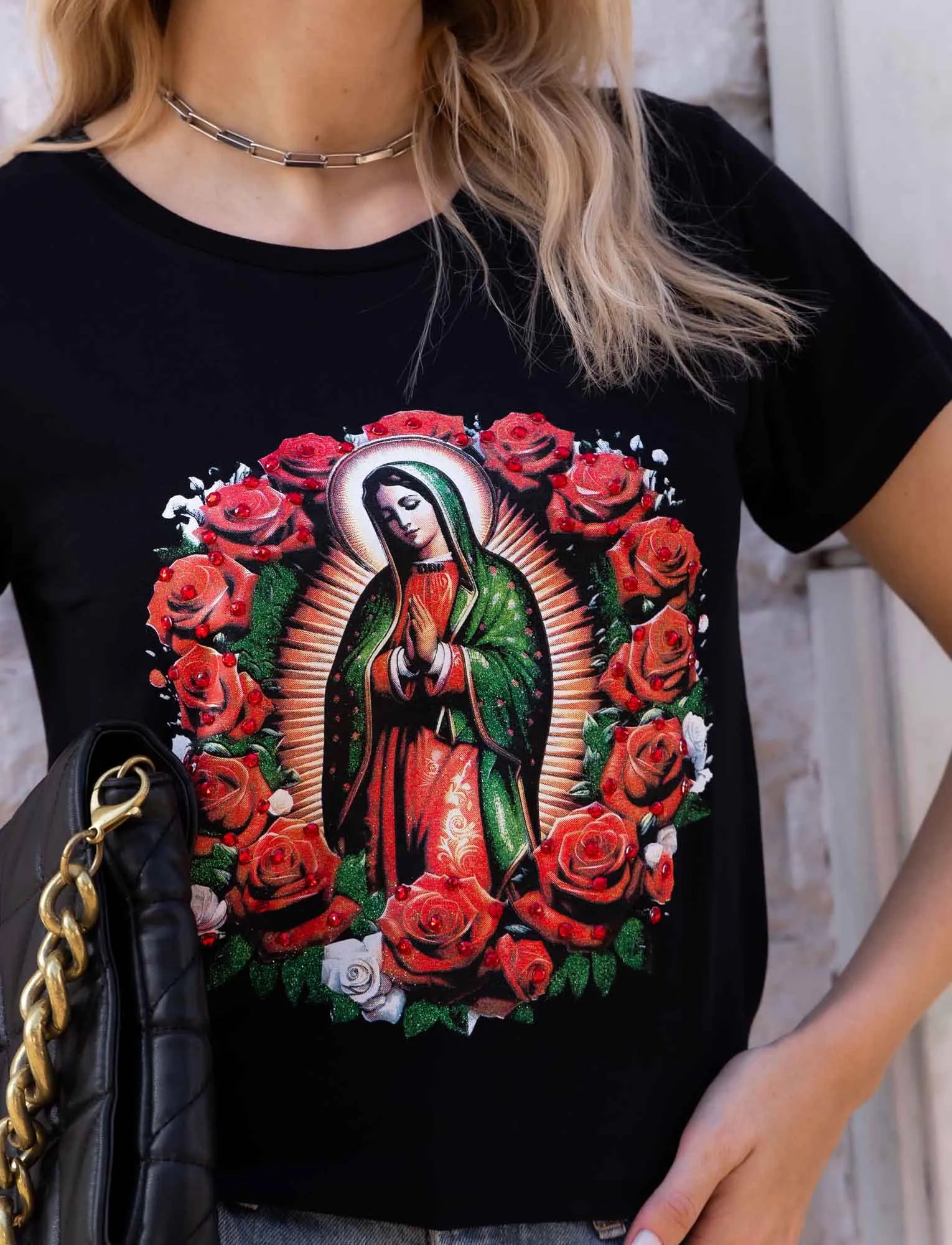 Our Lady of Guadalupe T-Shirt with Rhinestones