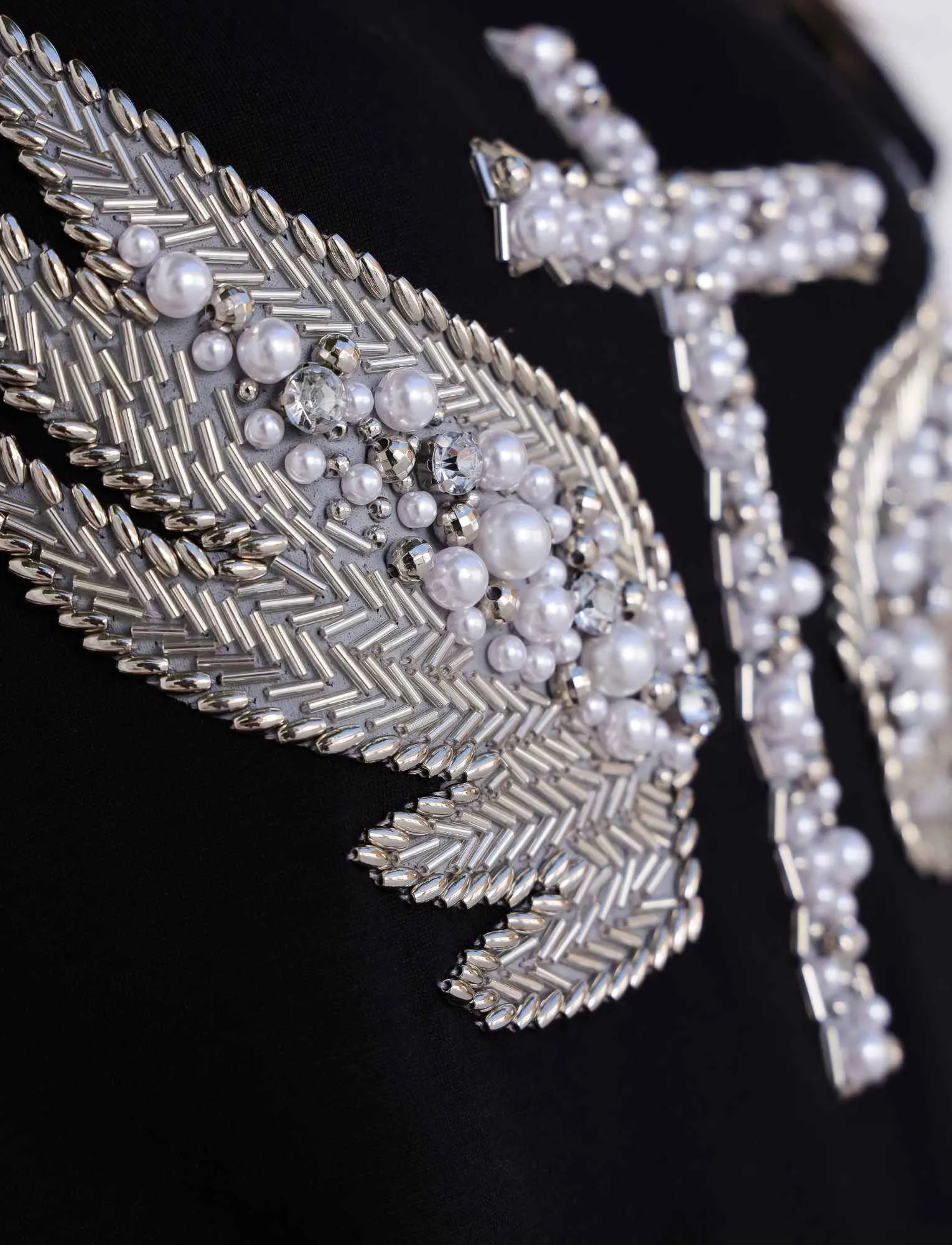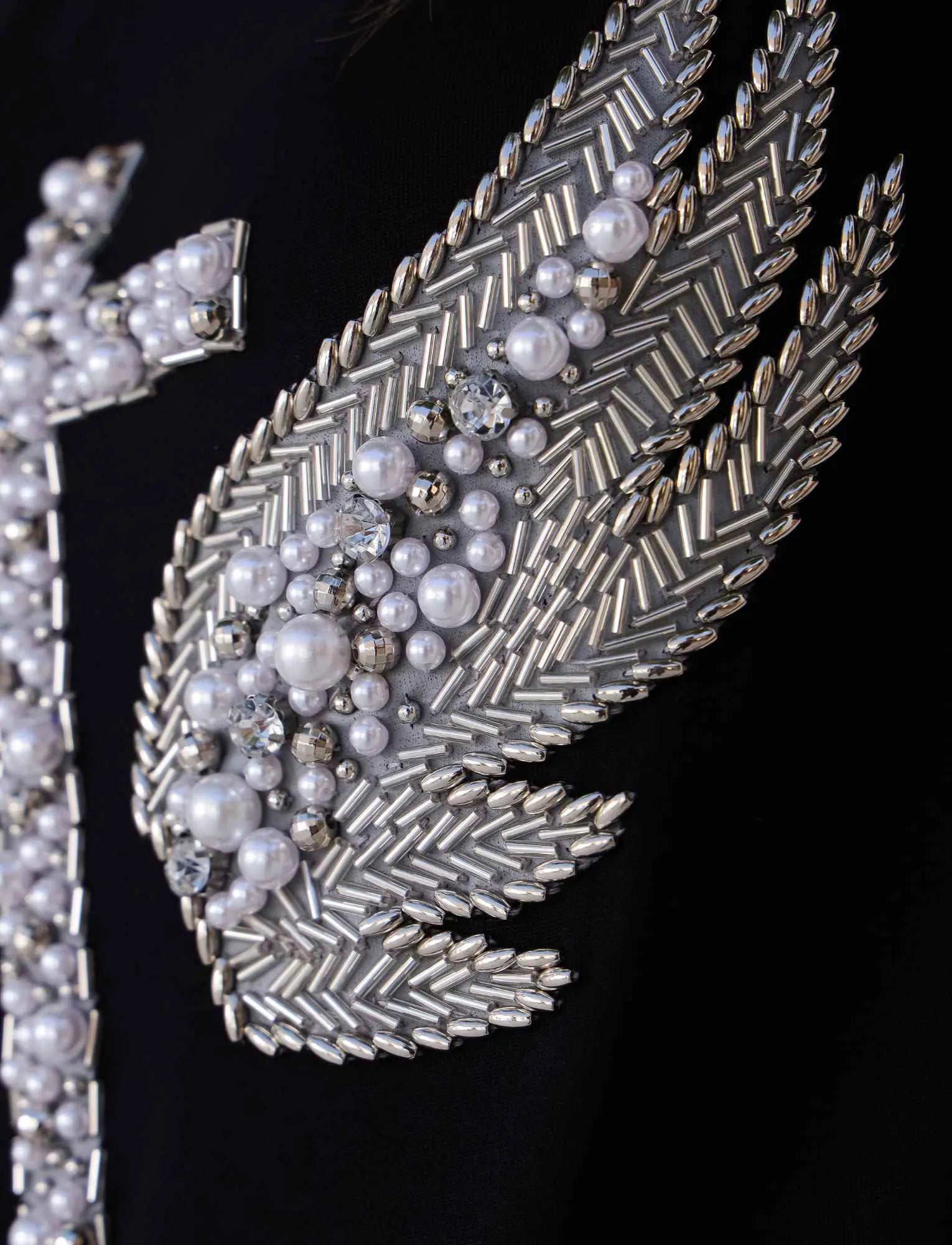 Silver Wing Cross T-shirts with Hand Embroidered Rhinestones