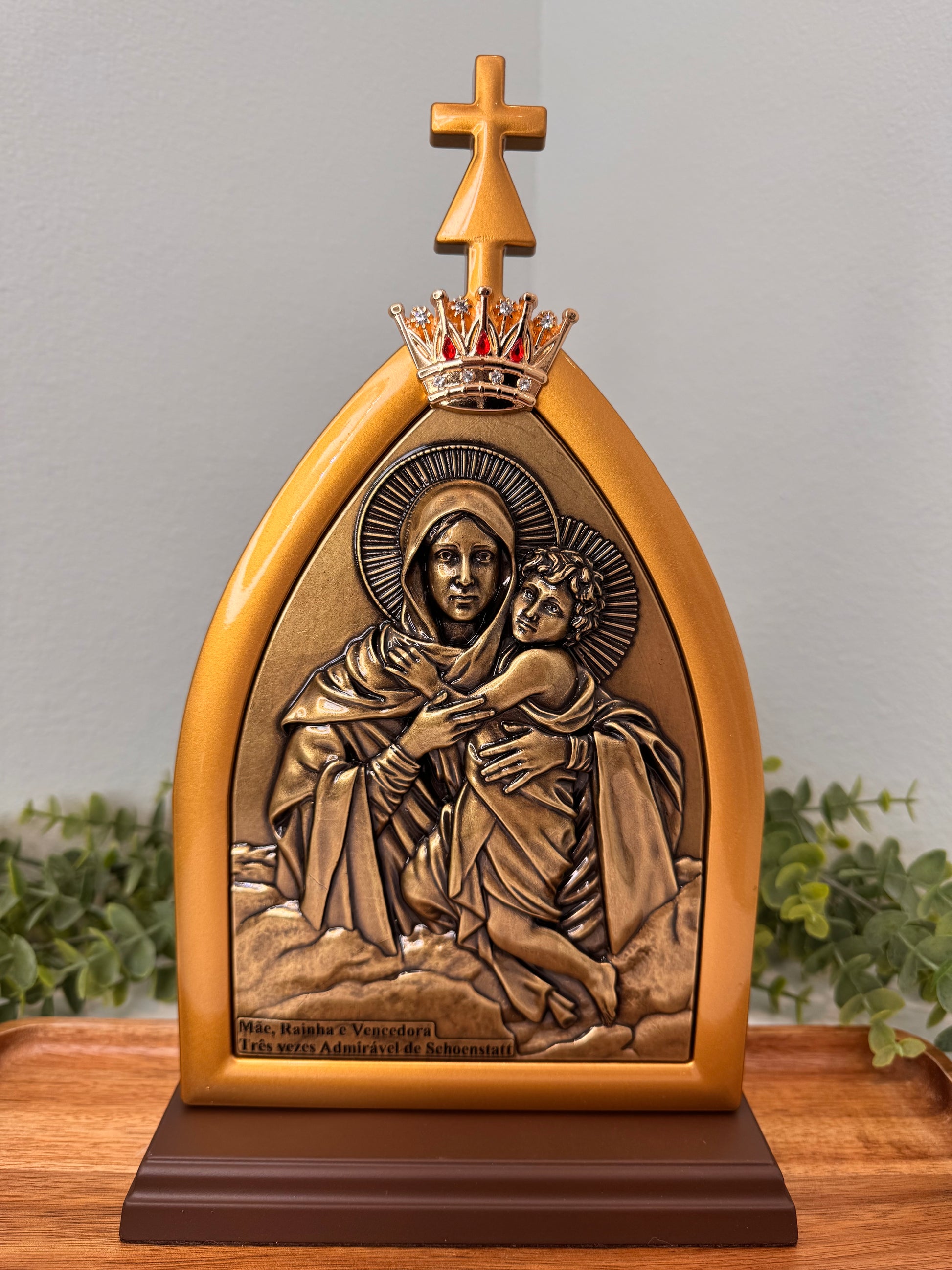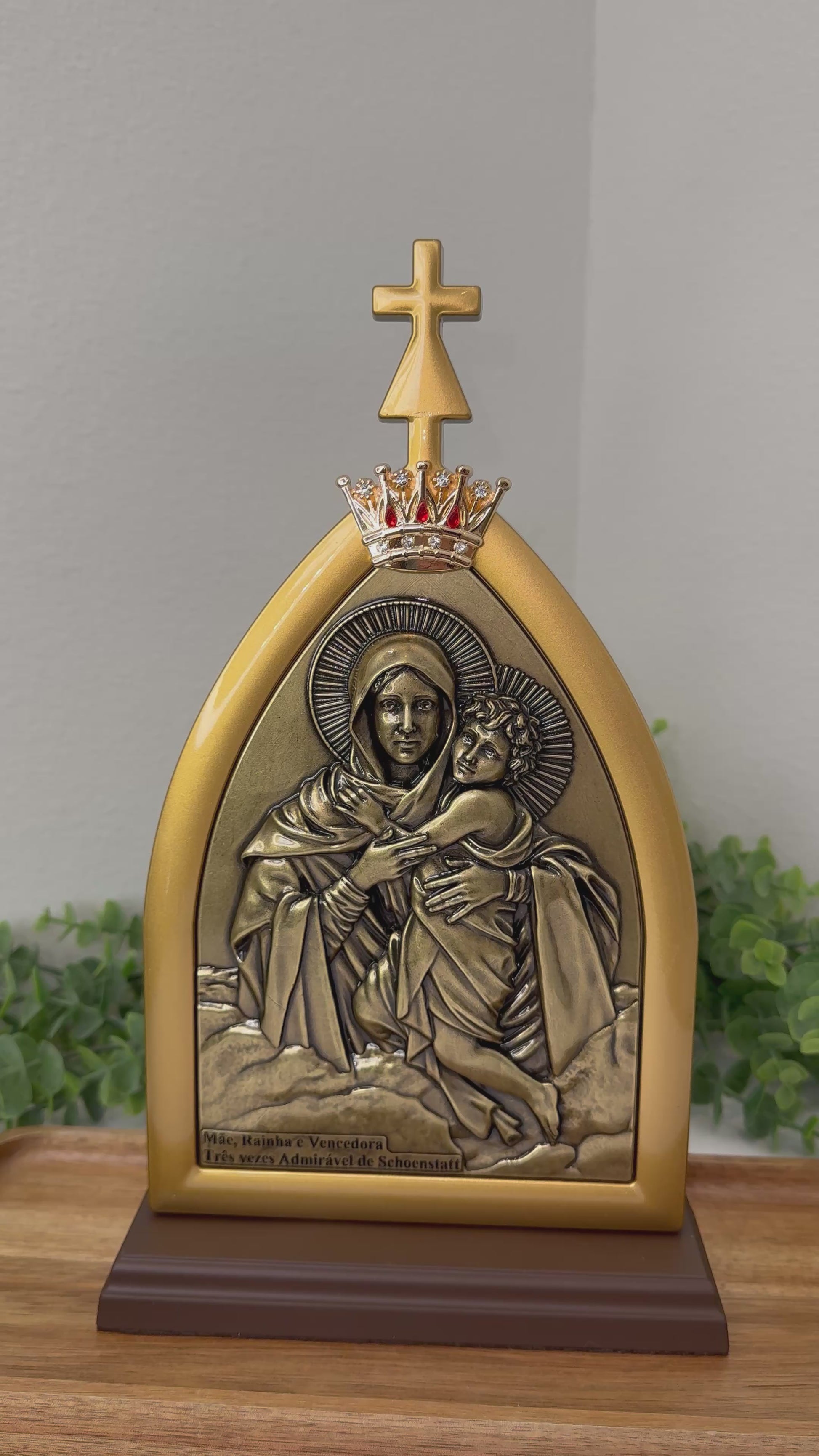 An adornment of faith, beauty and deep spirituality. The Schoenstatt Mother Queen Chapel , made of high-quality metal , is a devotional piece that combines classic design with modern artistic features , revealing an elegant style that elevates the environment and invites prayer.