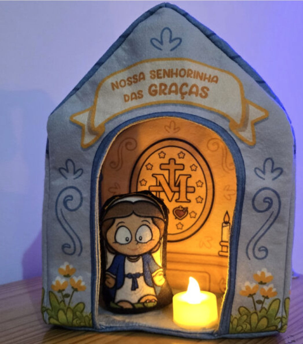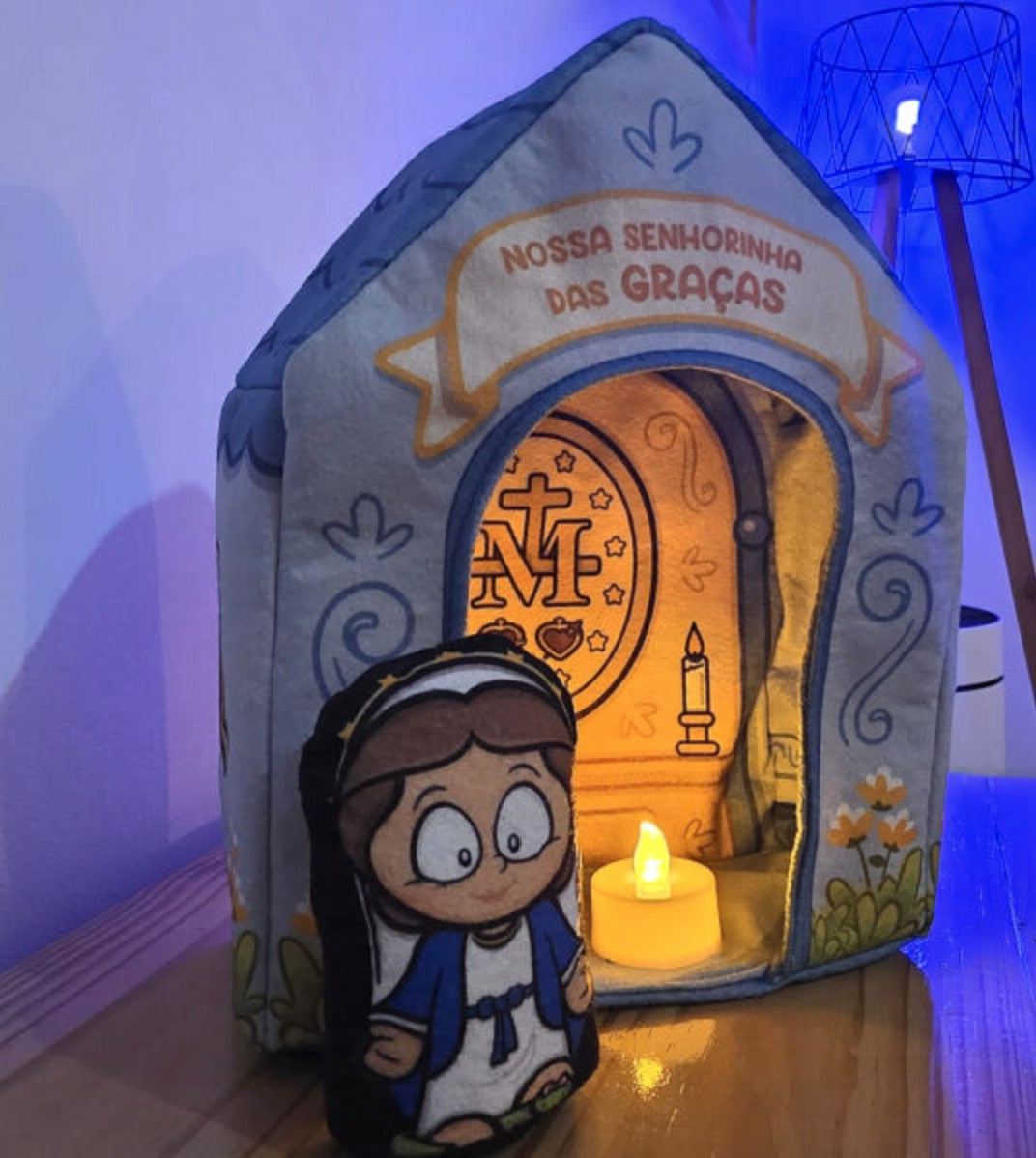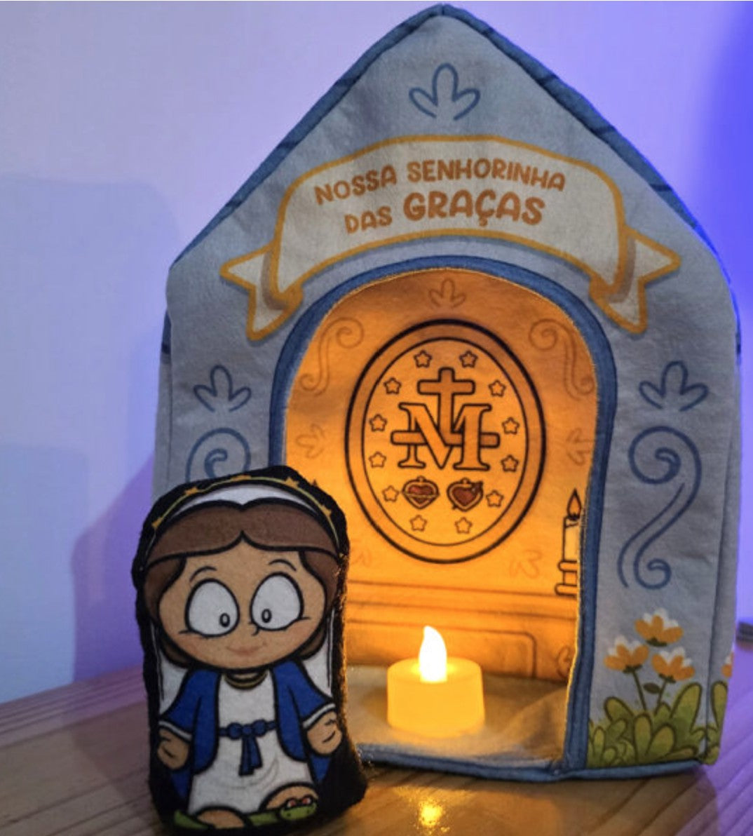 A charming way to teach and live faith with little ones! The Chapel of Our Lady of Grace is made of fabric, soft, welcoming, and full of details that delight children and adults alike.
