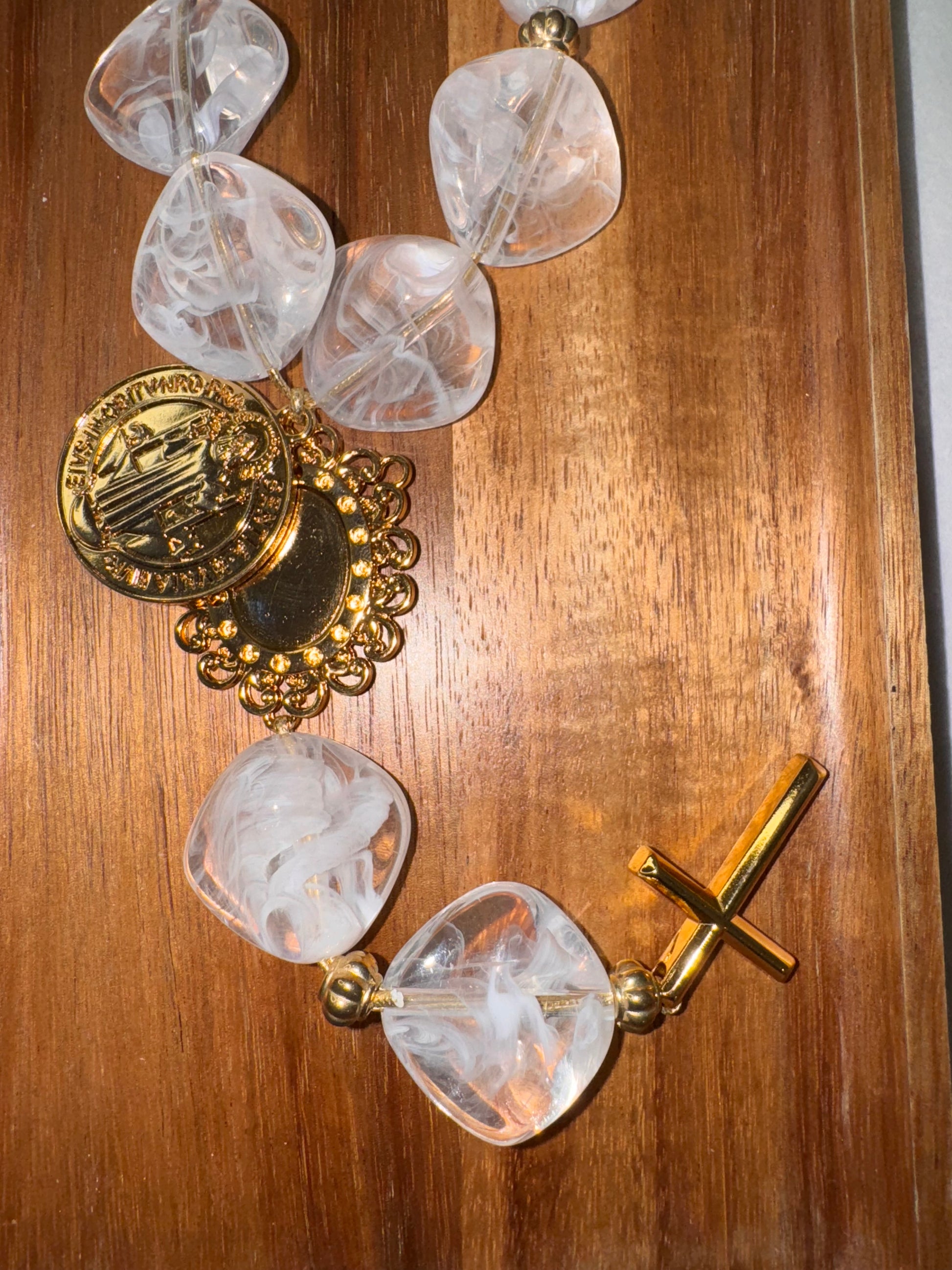 Decorative Table Necklace with Saint Benedict Medal