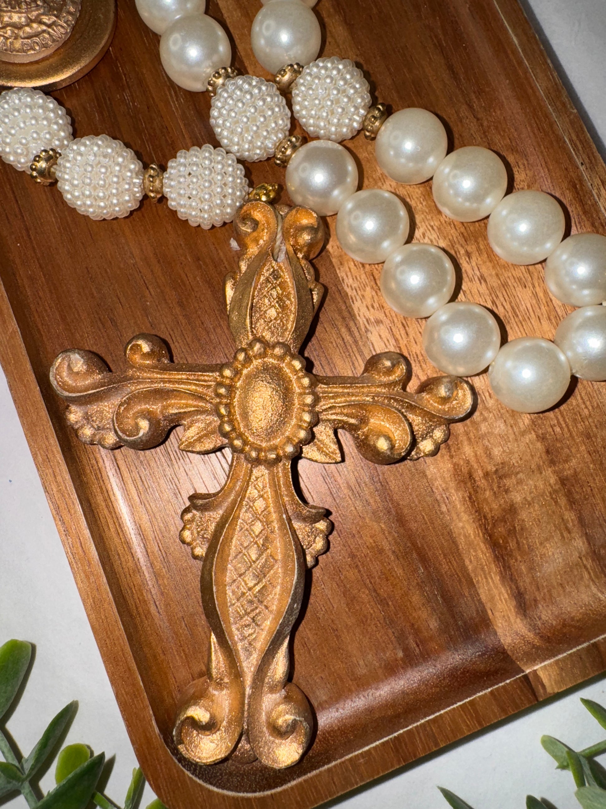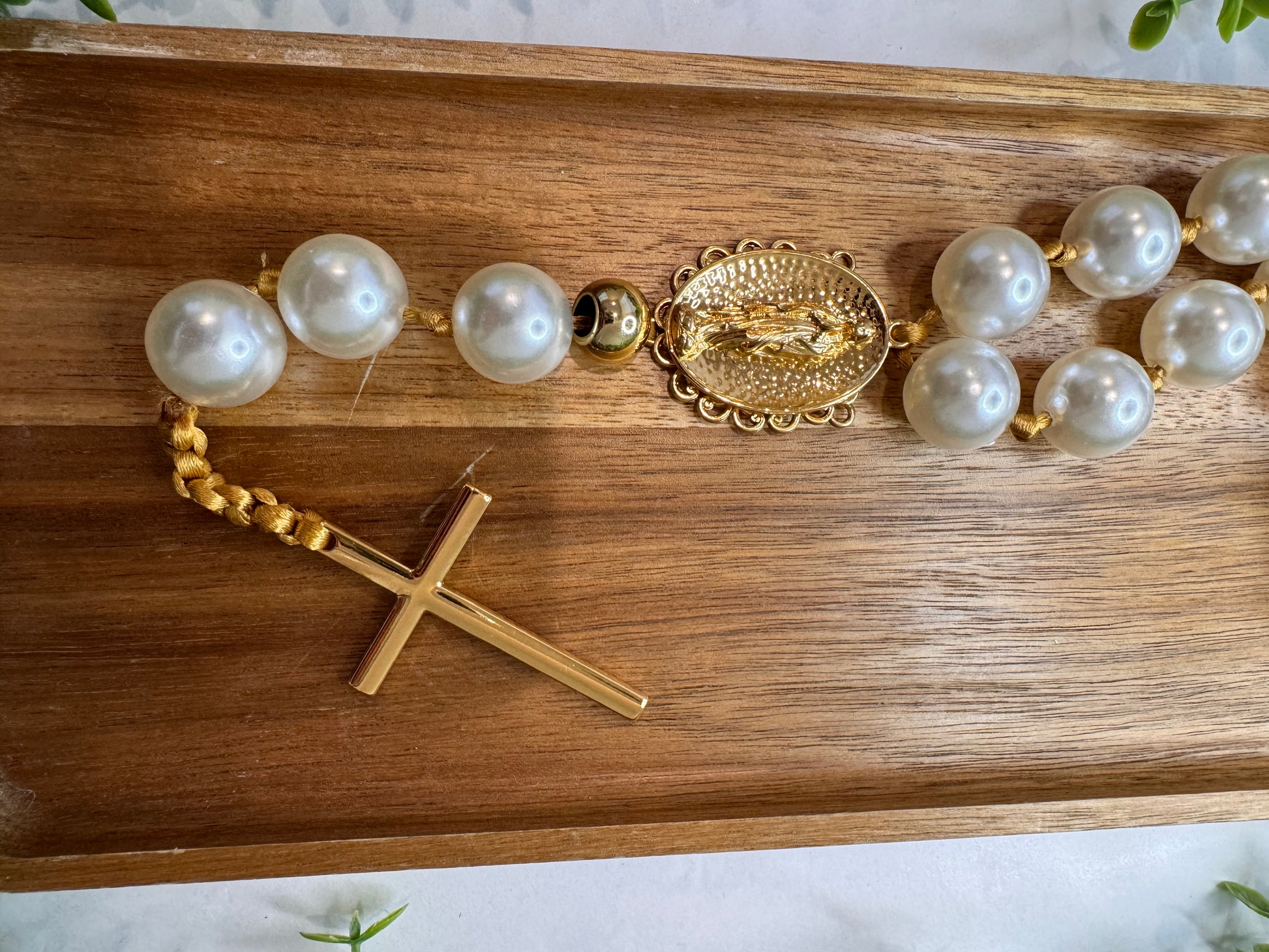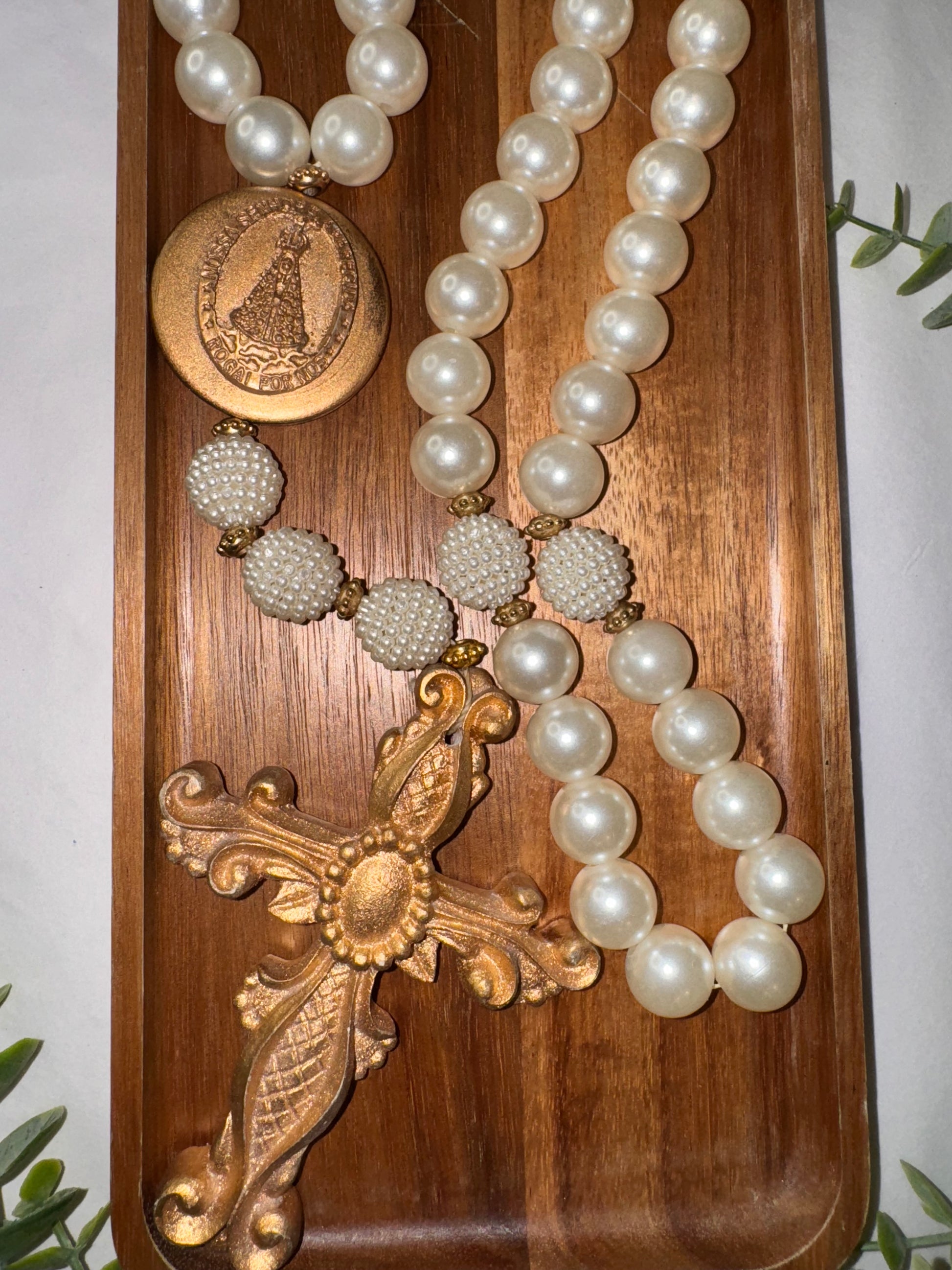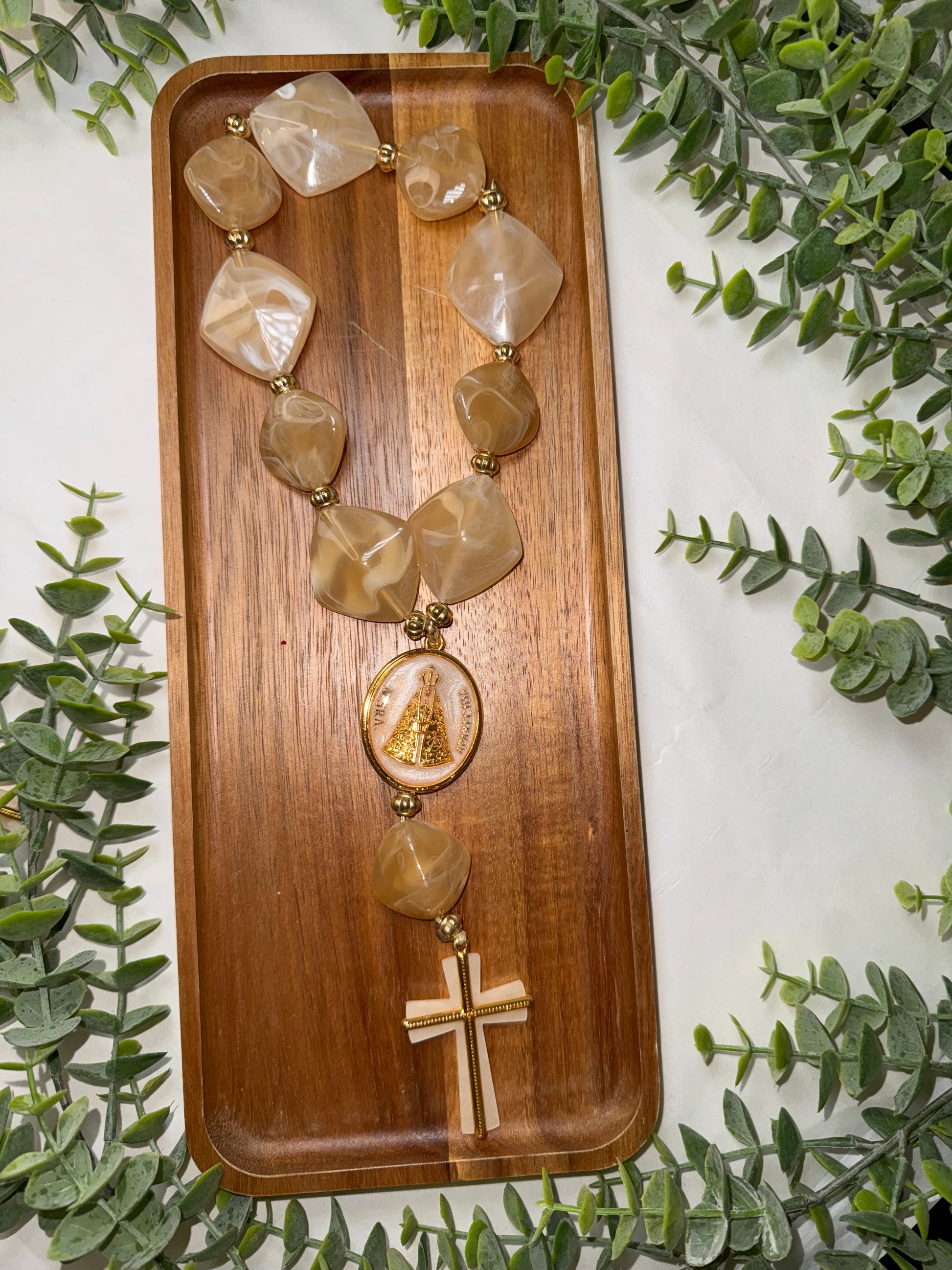 Bring even more faith and elegance to your home with the Our Lady Decorative Table Necklace. Made with sophisticated materials, it combines natural tones, braided details and delicate pearls, creating a unique and meaningful look.