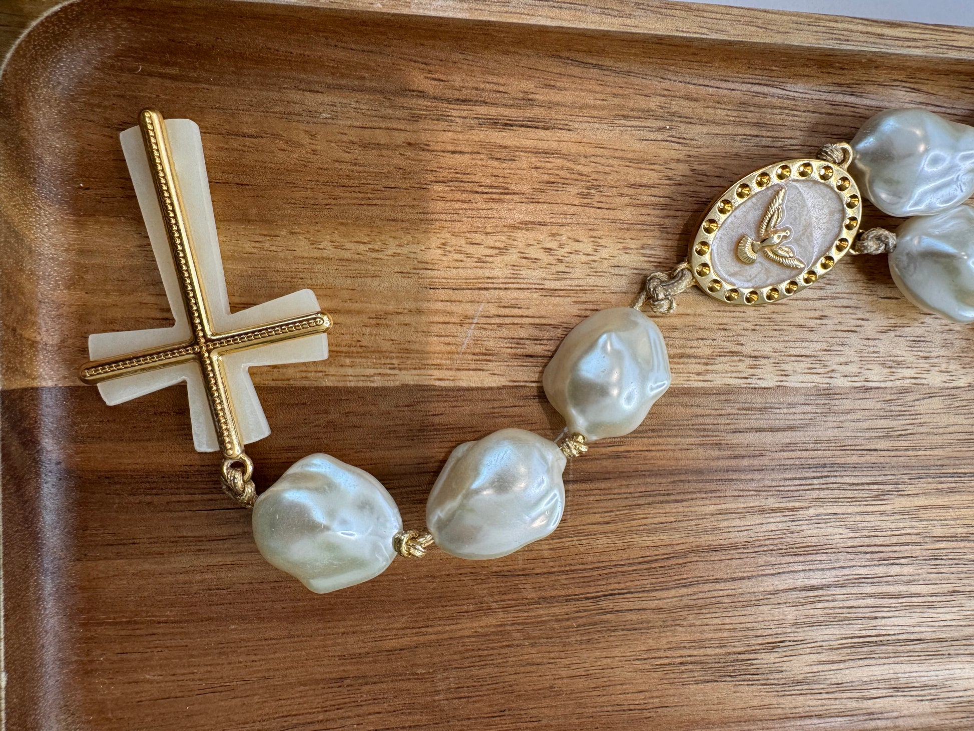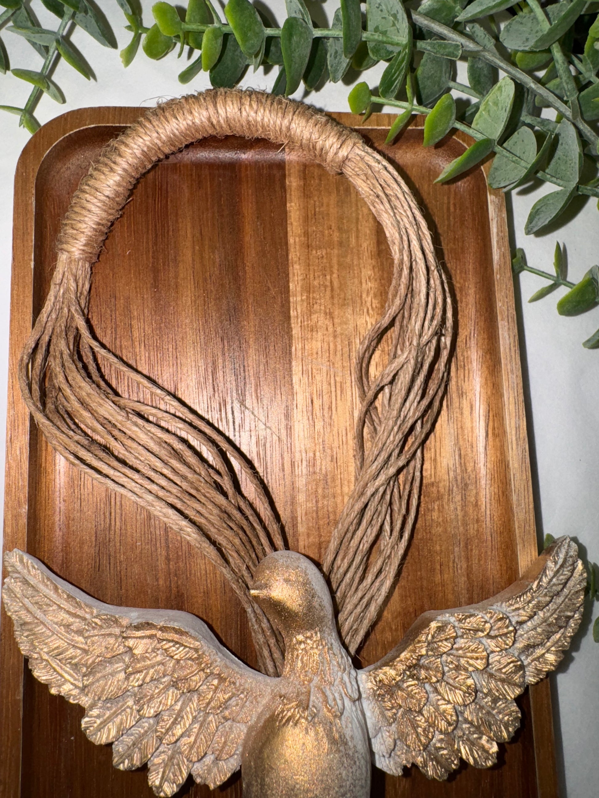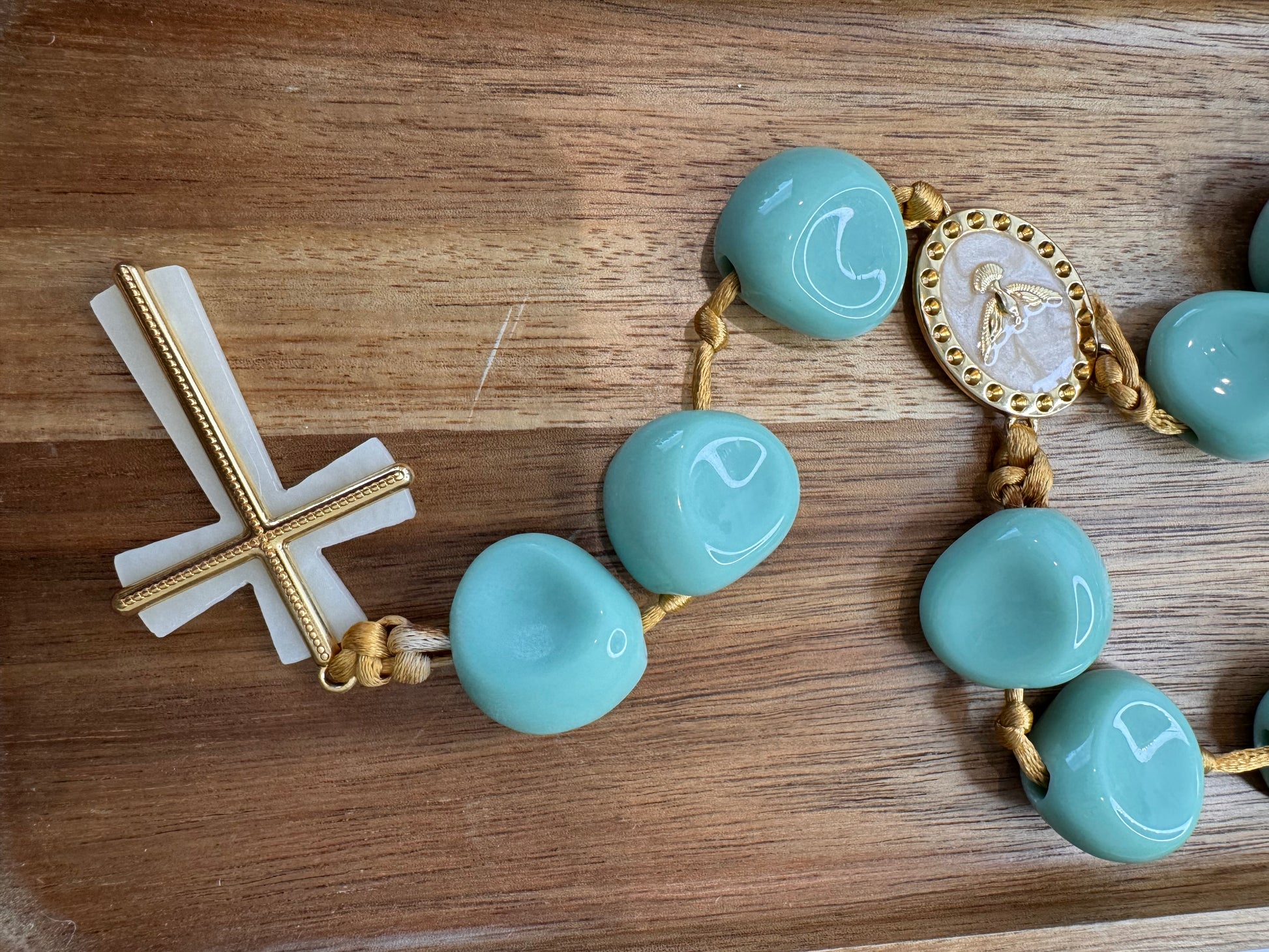 A symbol of faith and devotion, this Holy Spirit table necklace is a unique handcrafted piece that brings beauty and spirituality to your home. Made from premium materials such as ceramic, wood, resin, or plated metals, each model features unique details and color combinations such as blue, white, terracotta, gold, and pearl.
