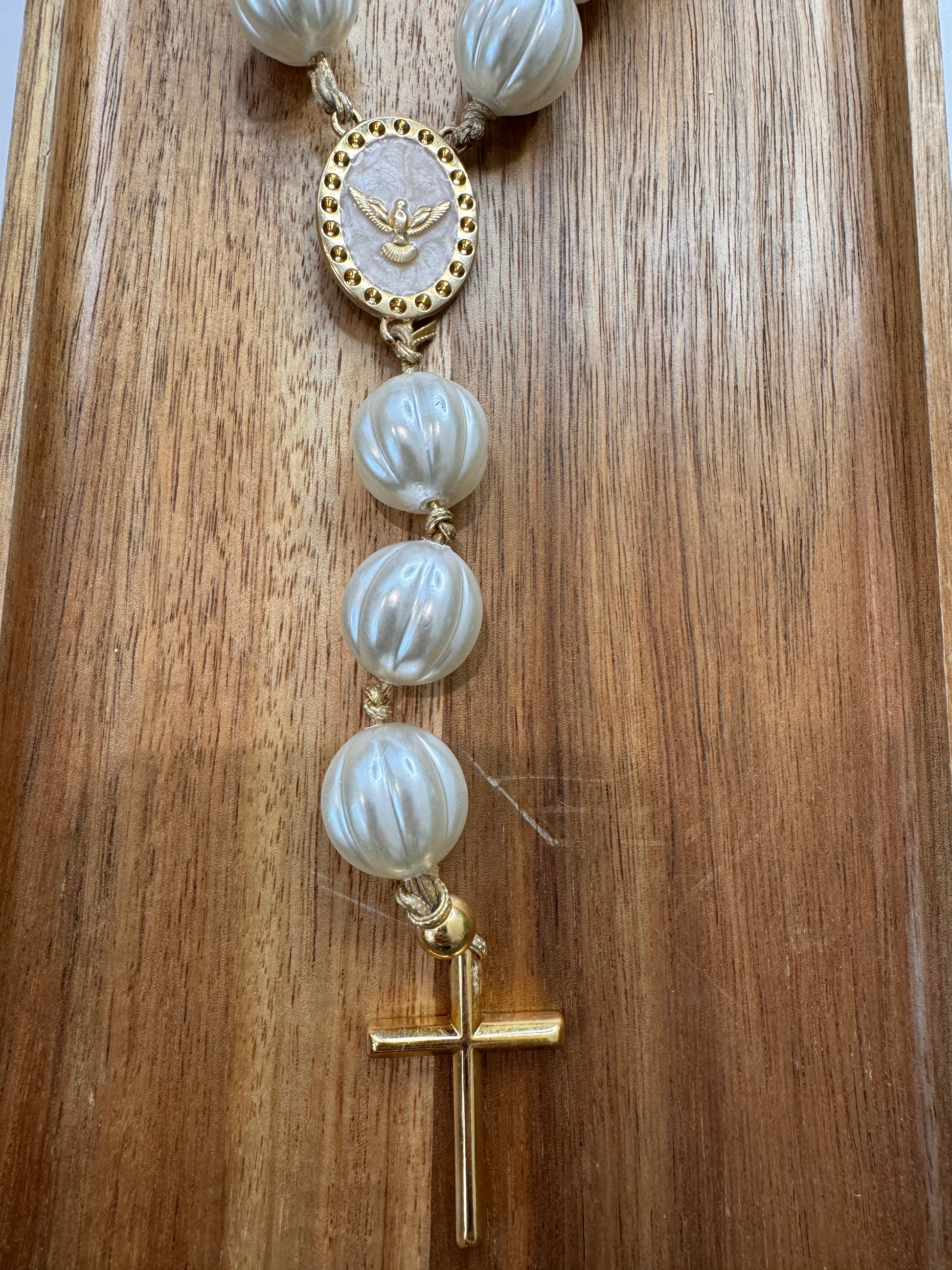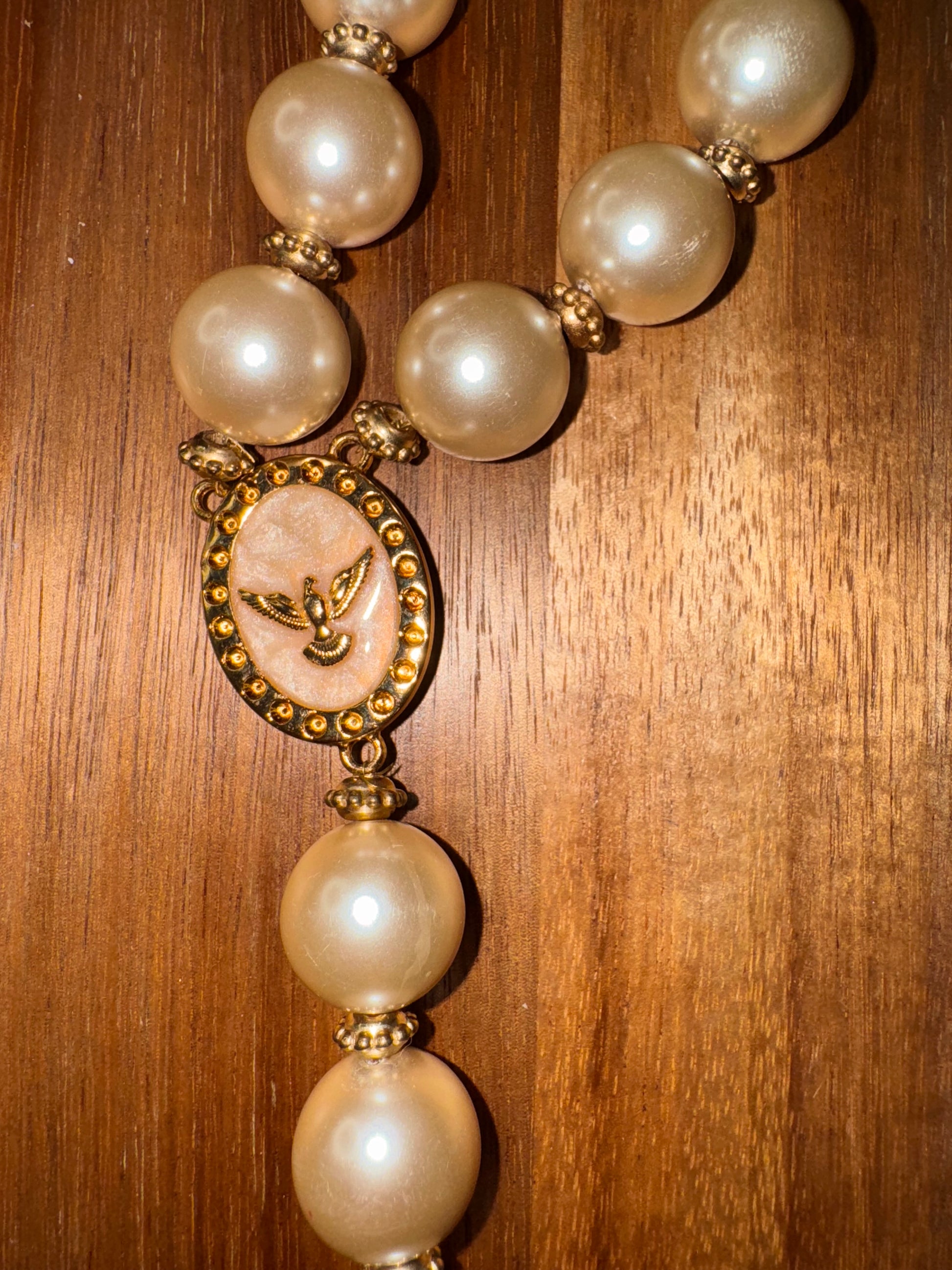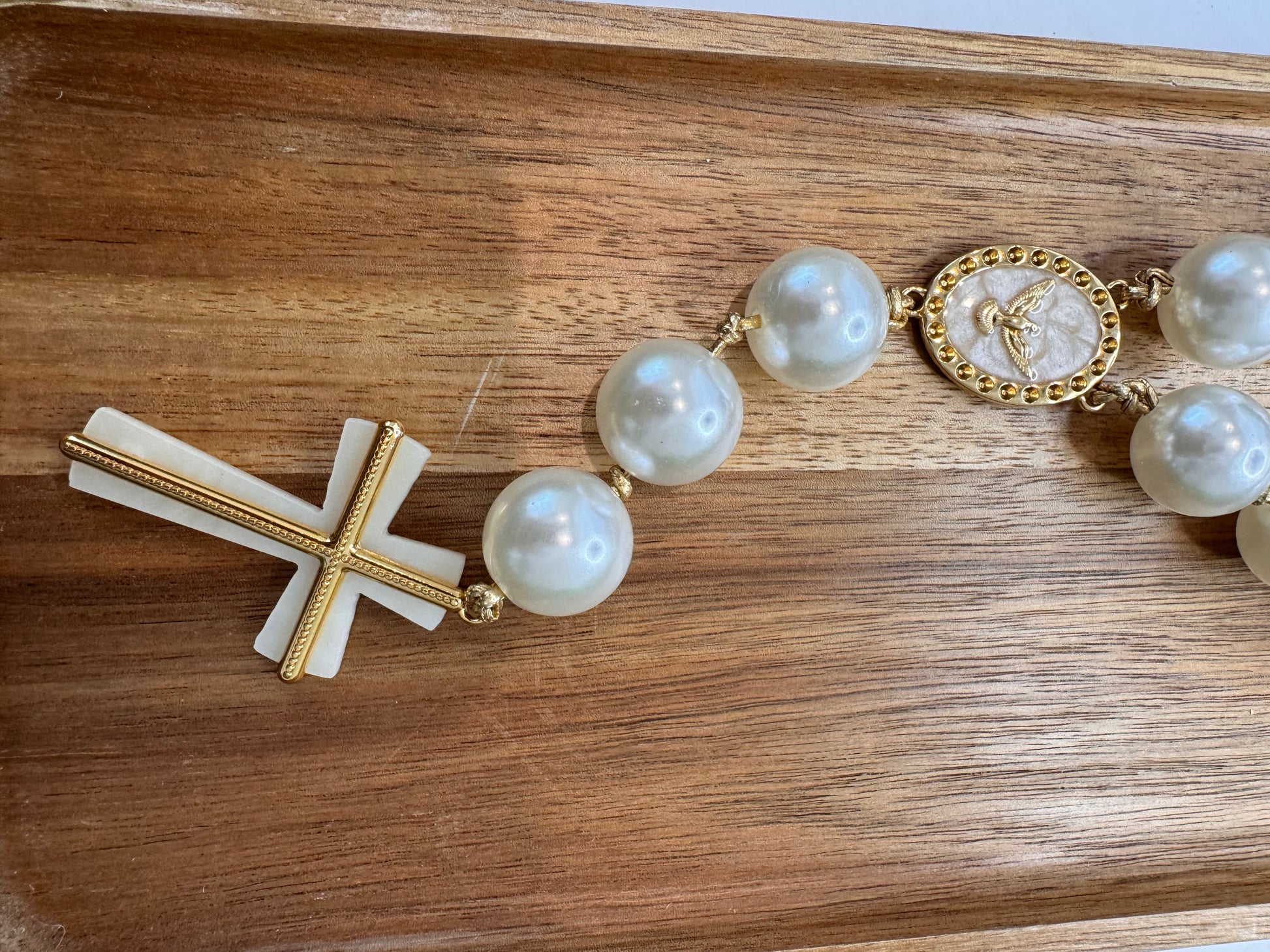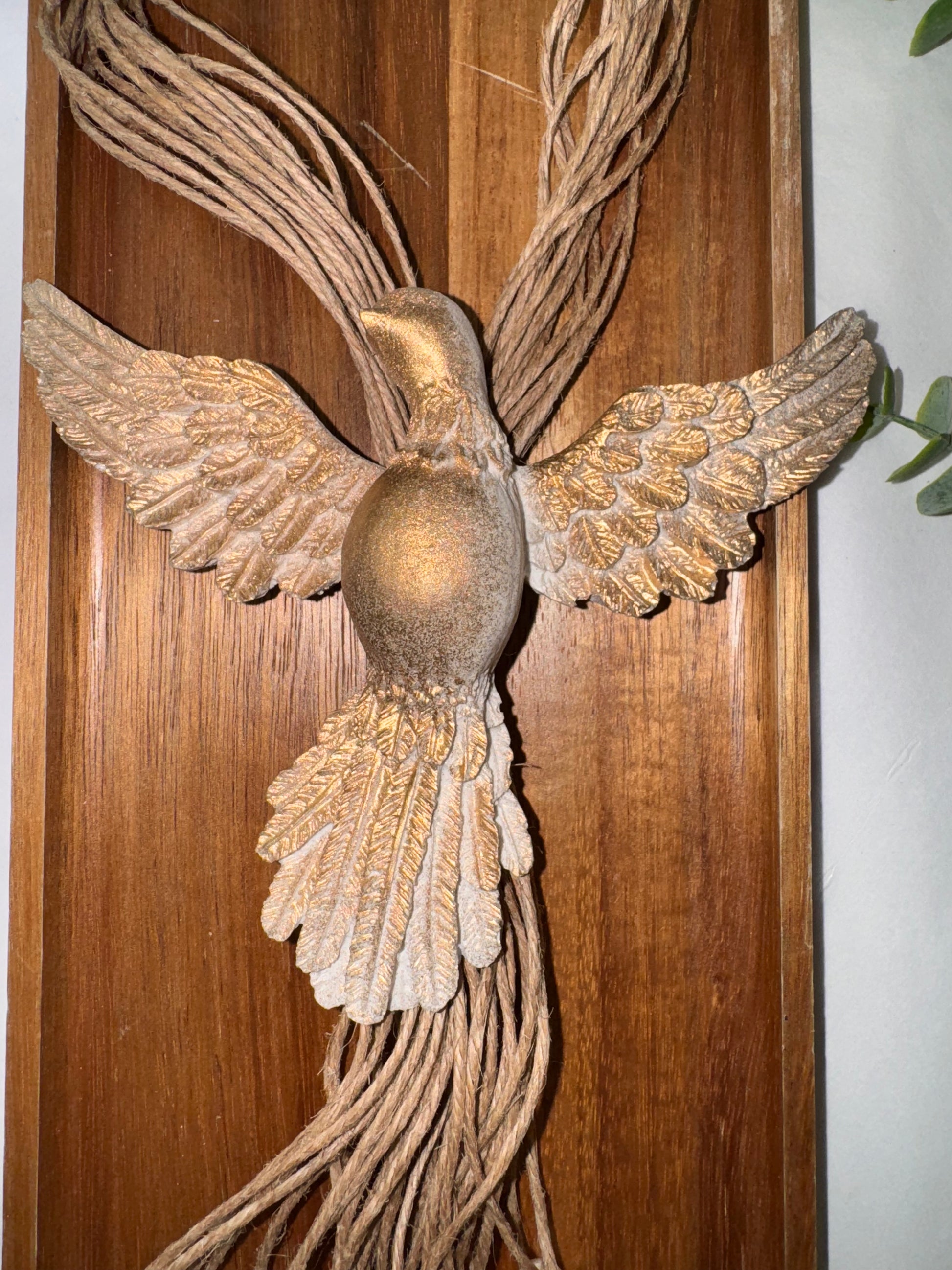 A symbol of faith and devotion, this Holy Spirit table necklace is a unique handcrafted piece that brings beauty and spirituality to your home. Made from premium materials such as ceramic, wood, resin, or plated metals, each model features unique details and color combinations such as blue, white, terracotta, gold, and pearl.