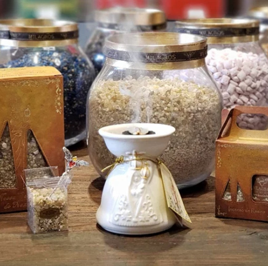 Created especially for devotees of Our Lady of Nazareth , this glazed ceramic incense burner combines faith, elegance and functionality. ✨