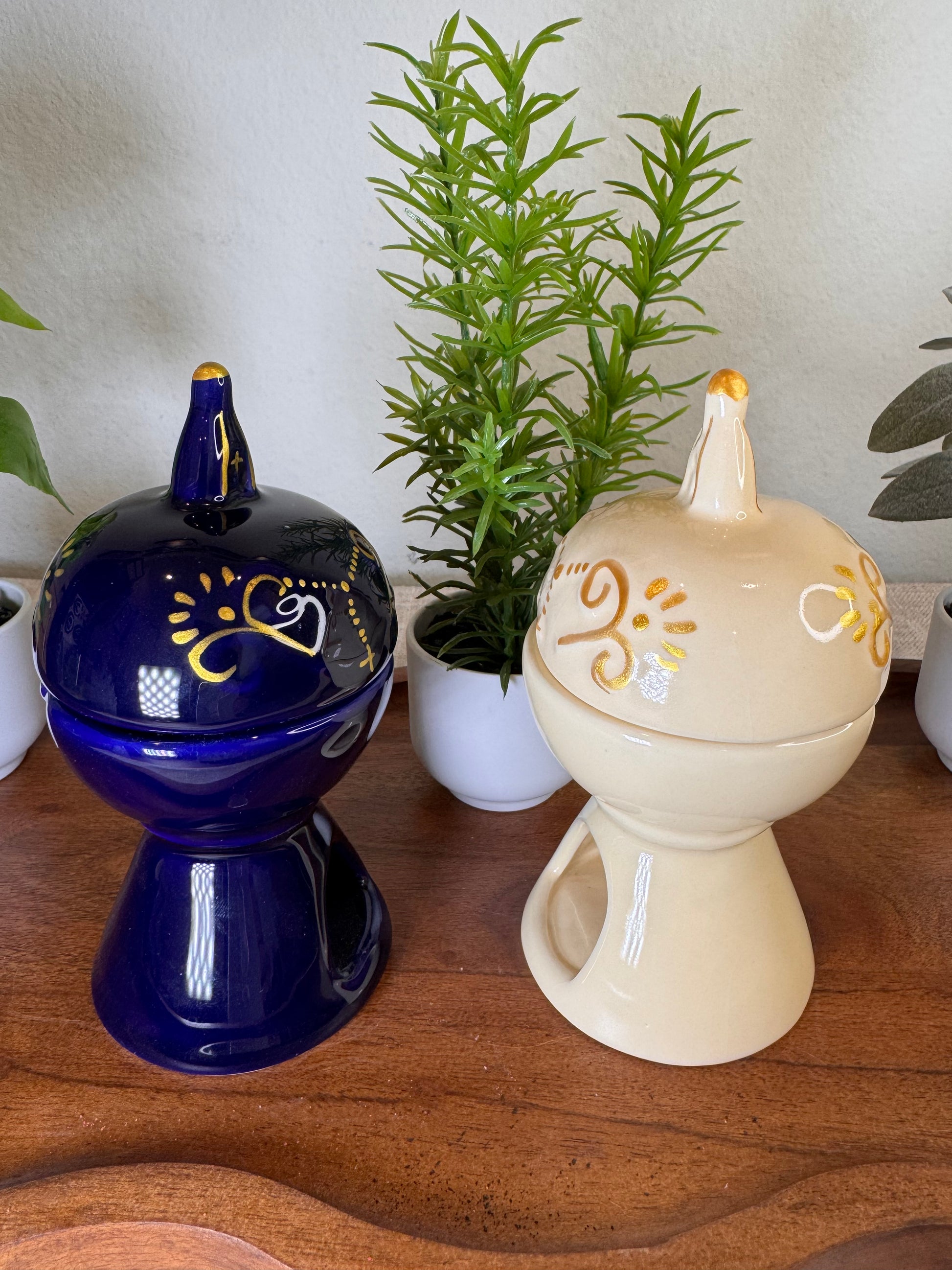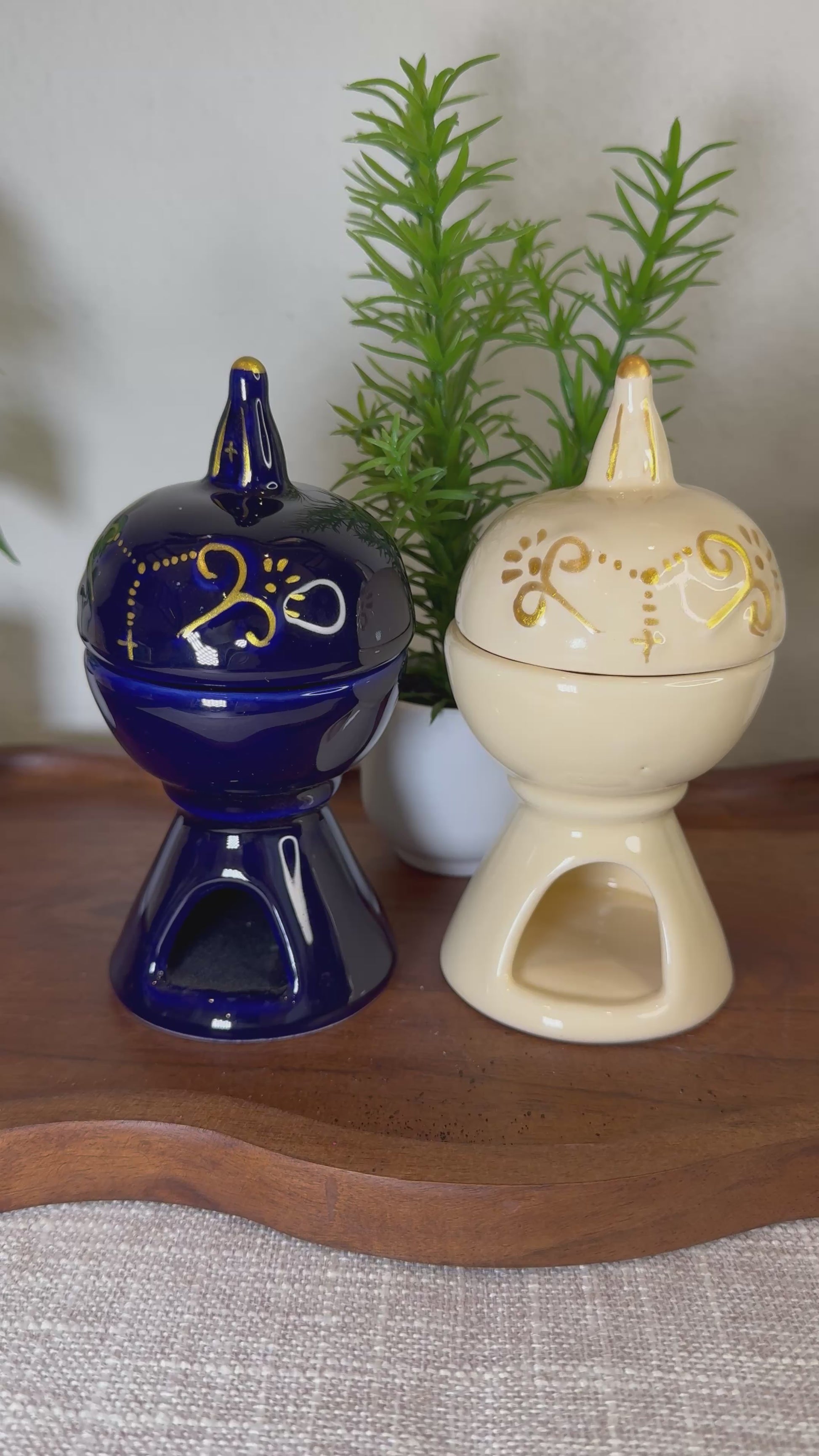 This beautiful glazed ceramic incense burner was created especially for devotees of Our Lady of Aparecida . Perfect for burning resin incense, it has a closed lid , preserving the tradition and elegance of the piece.