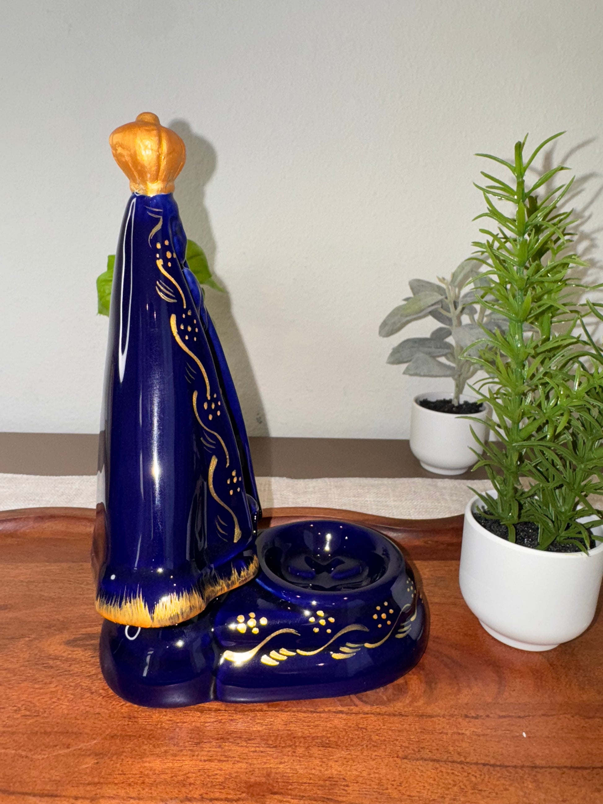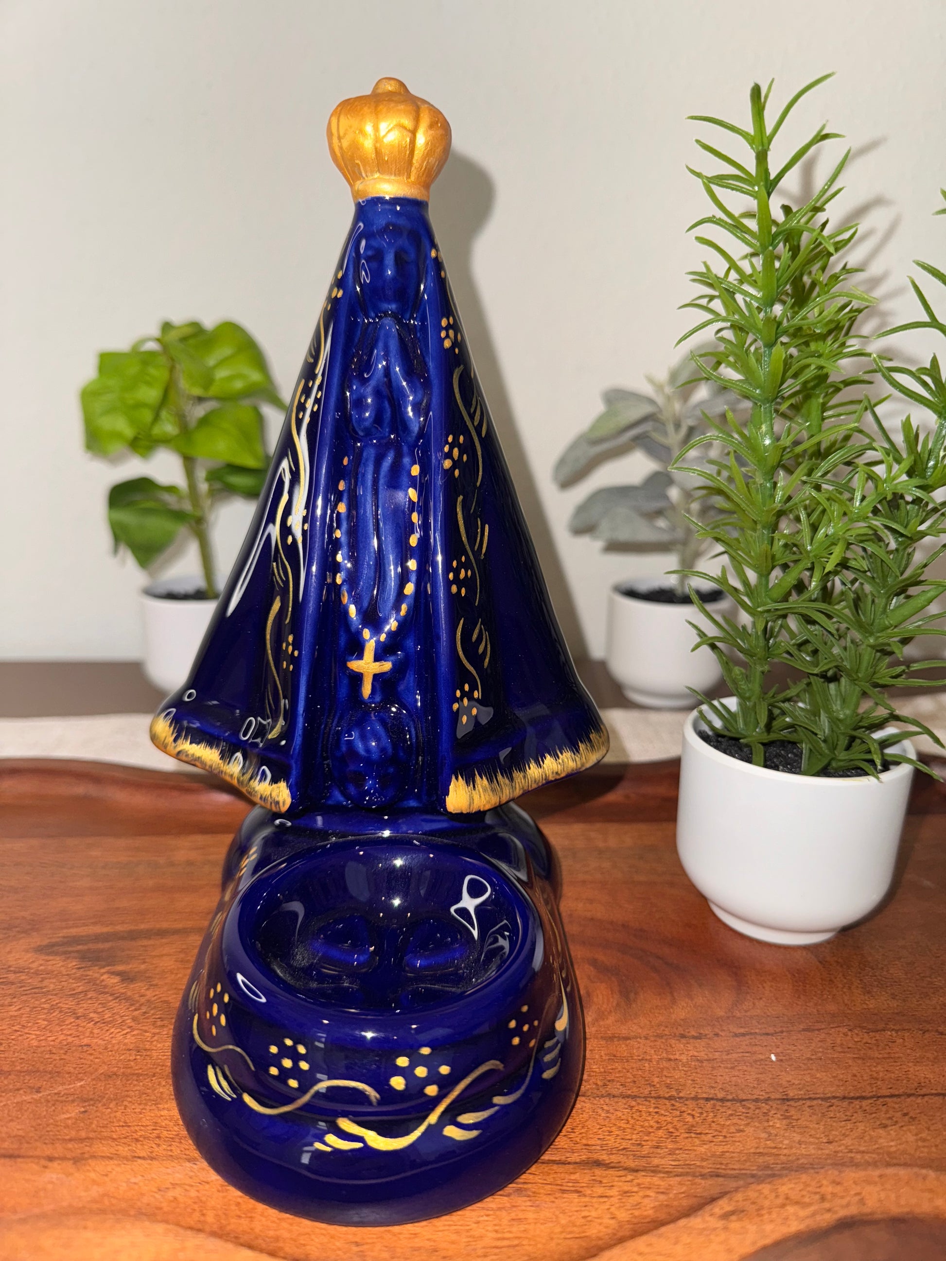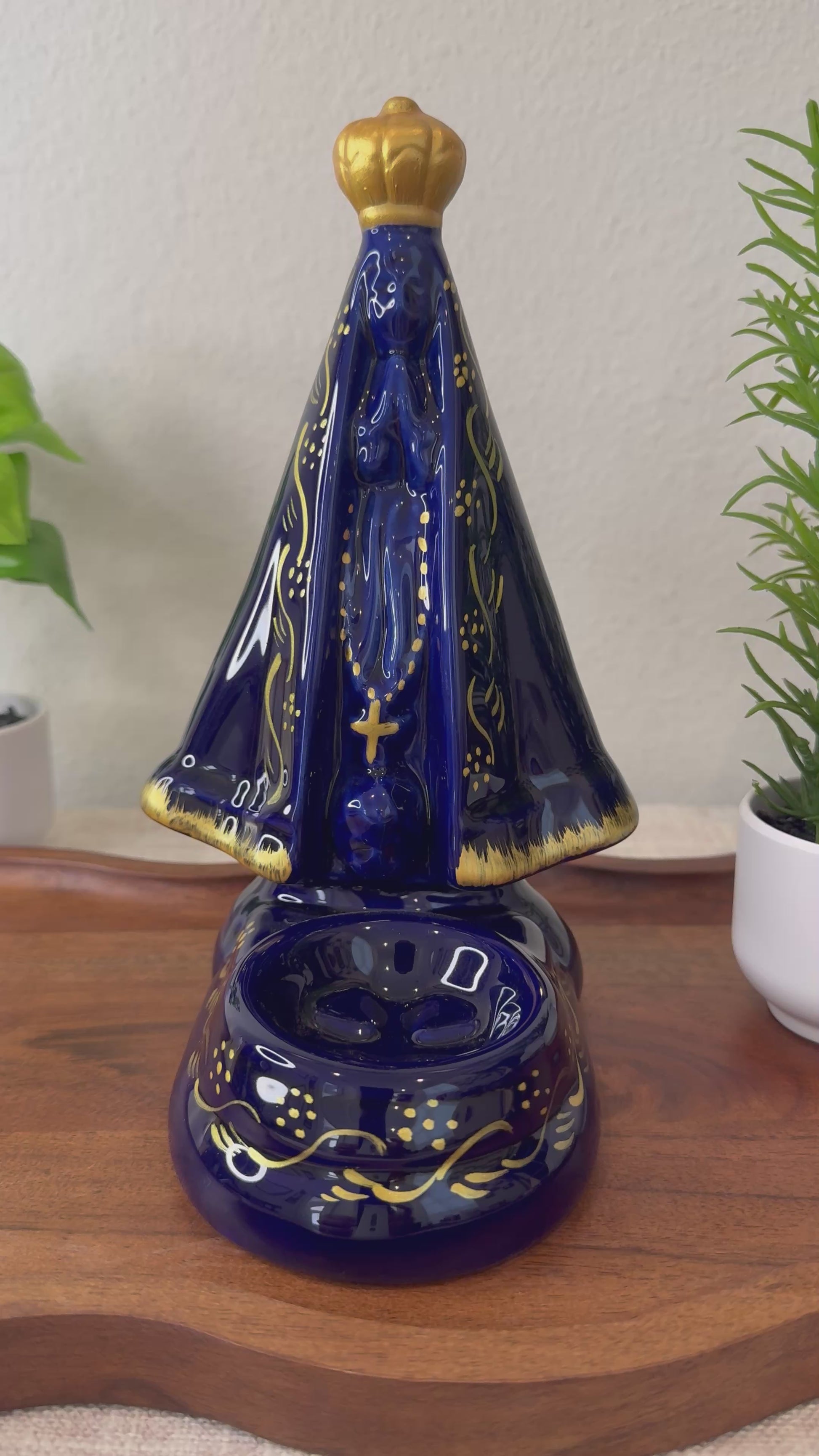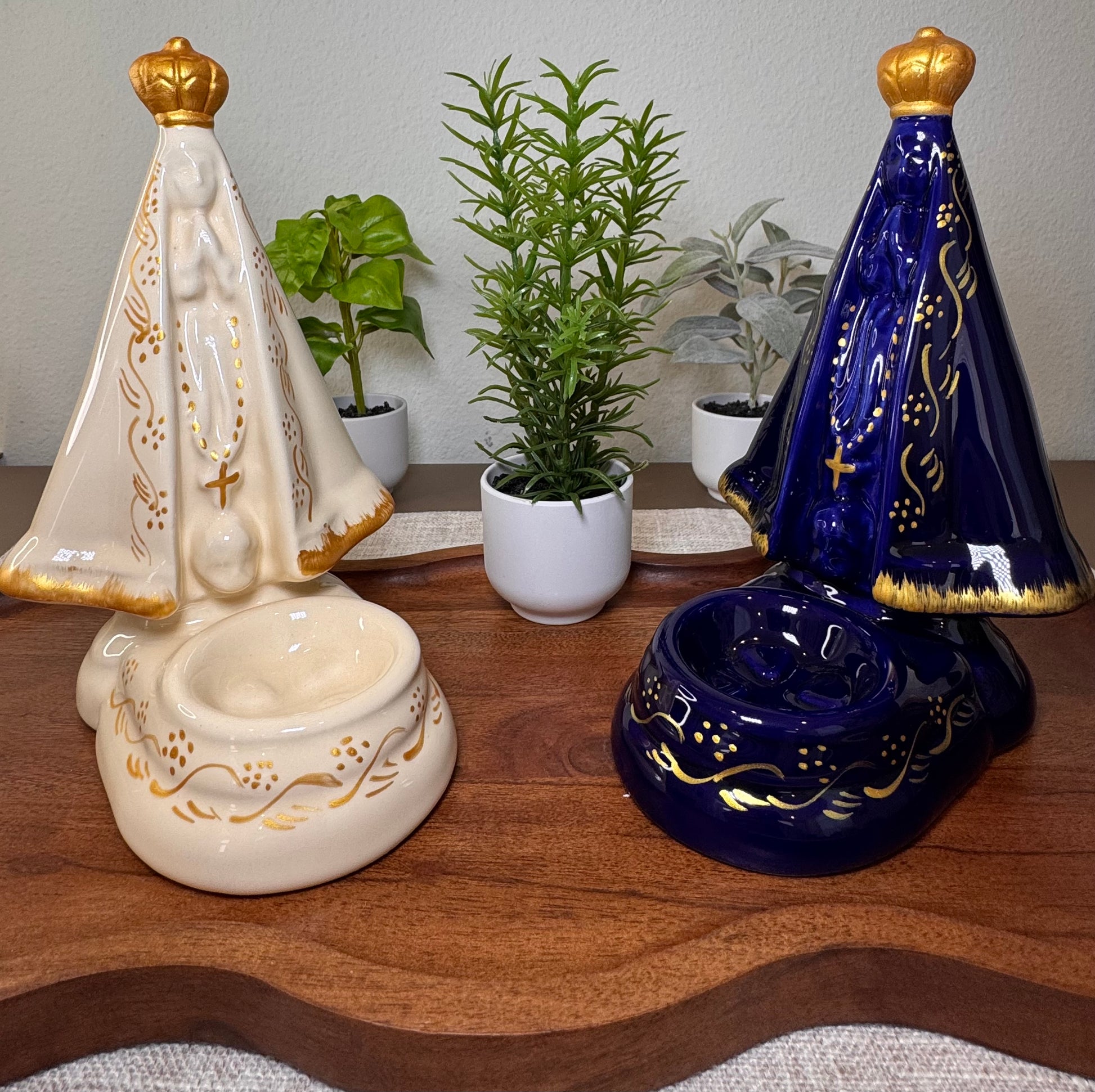 Made of glazed ceramic , the piece is practical and elegant, perfect for burning resin incense and creating an environment of peace and spirituality. 🌿💖 Its presence transmits serenity and reinforces devotion to our Mother Aparecida. 🙌💙