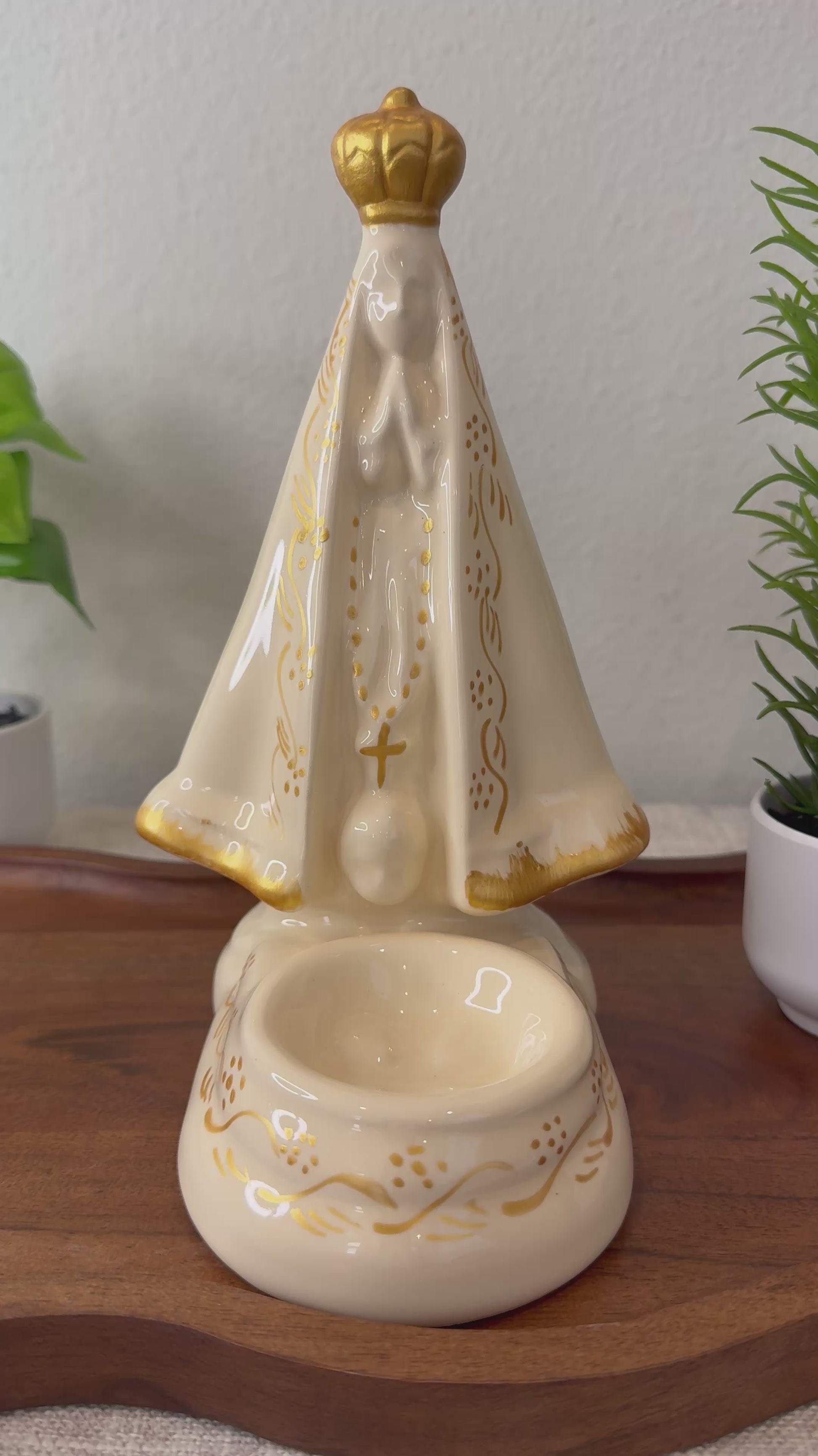 Made with care and delicacy, this beautiful image of Our Lady of Aparecida with incense burner was specially created for devotees who wish to unite faith and beauty in their moments of prayer. 🌹🕊️