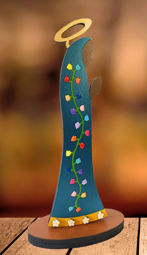 A piece full of color, faith, and delicacy! This special version of Our Lady of Aparecida – Side View is made of MDF and hand-painted , with a deep blue mantle decorated with colorful embossed flowers and a floral base that conveys lightness and joy. 💙🌸