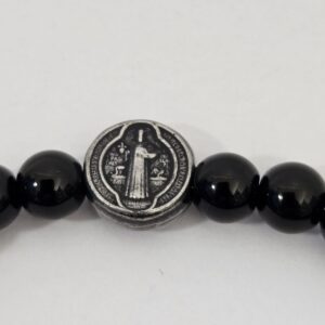 Between the soft beads of 6mm Black Agate , an ancient promise of protection and faith pulses.