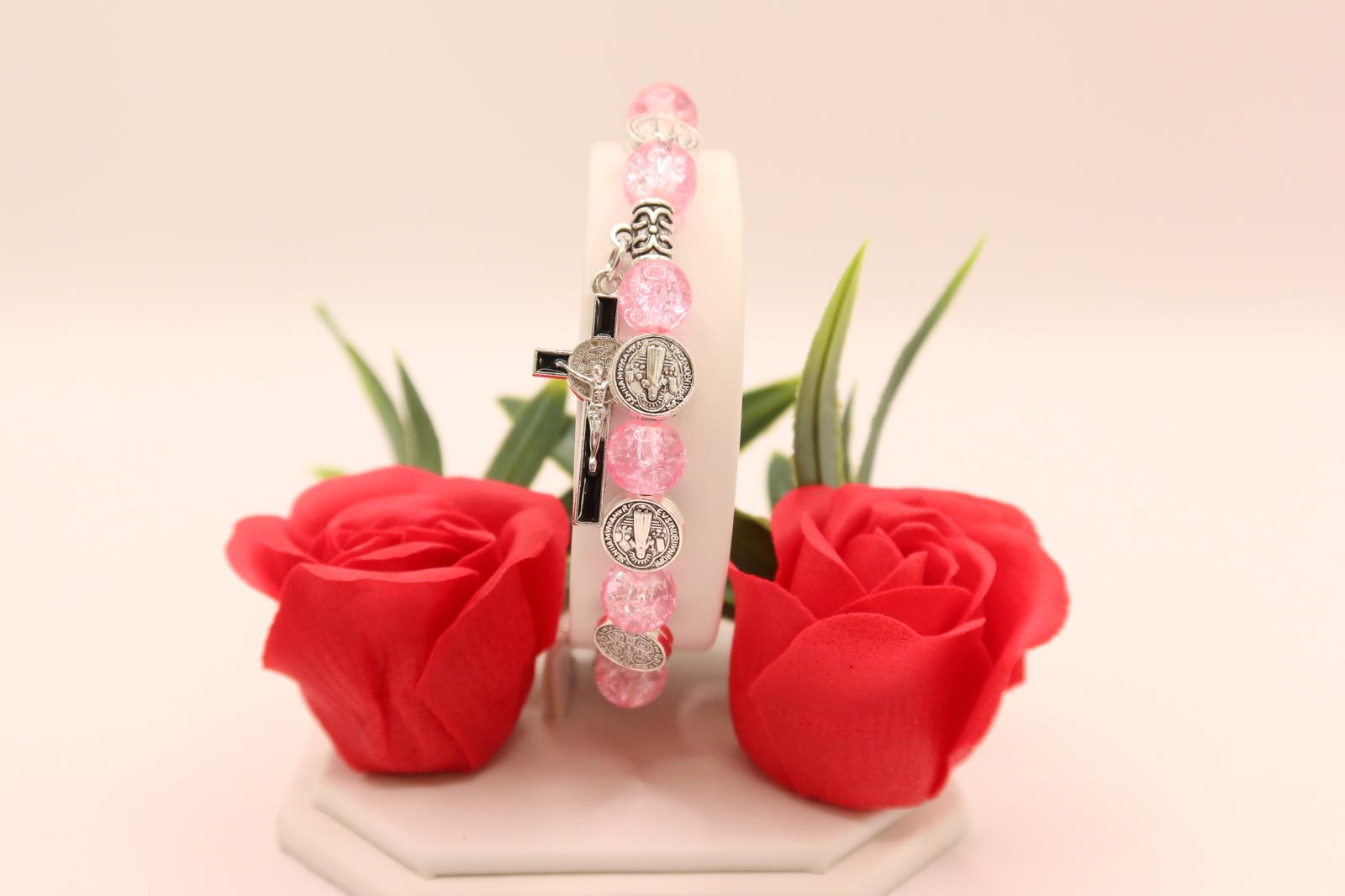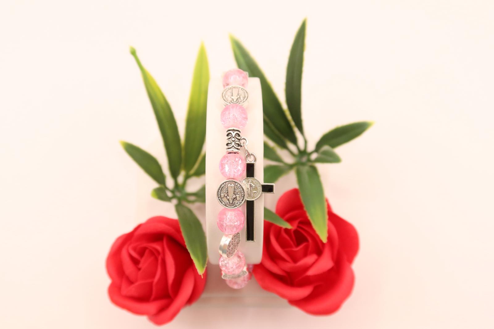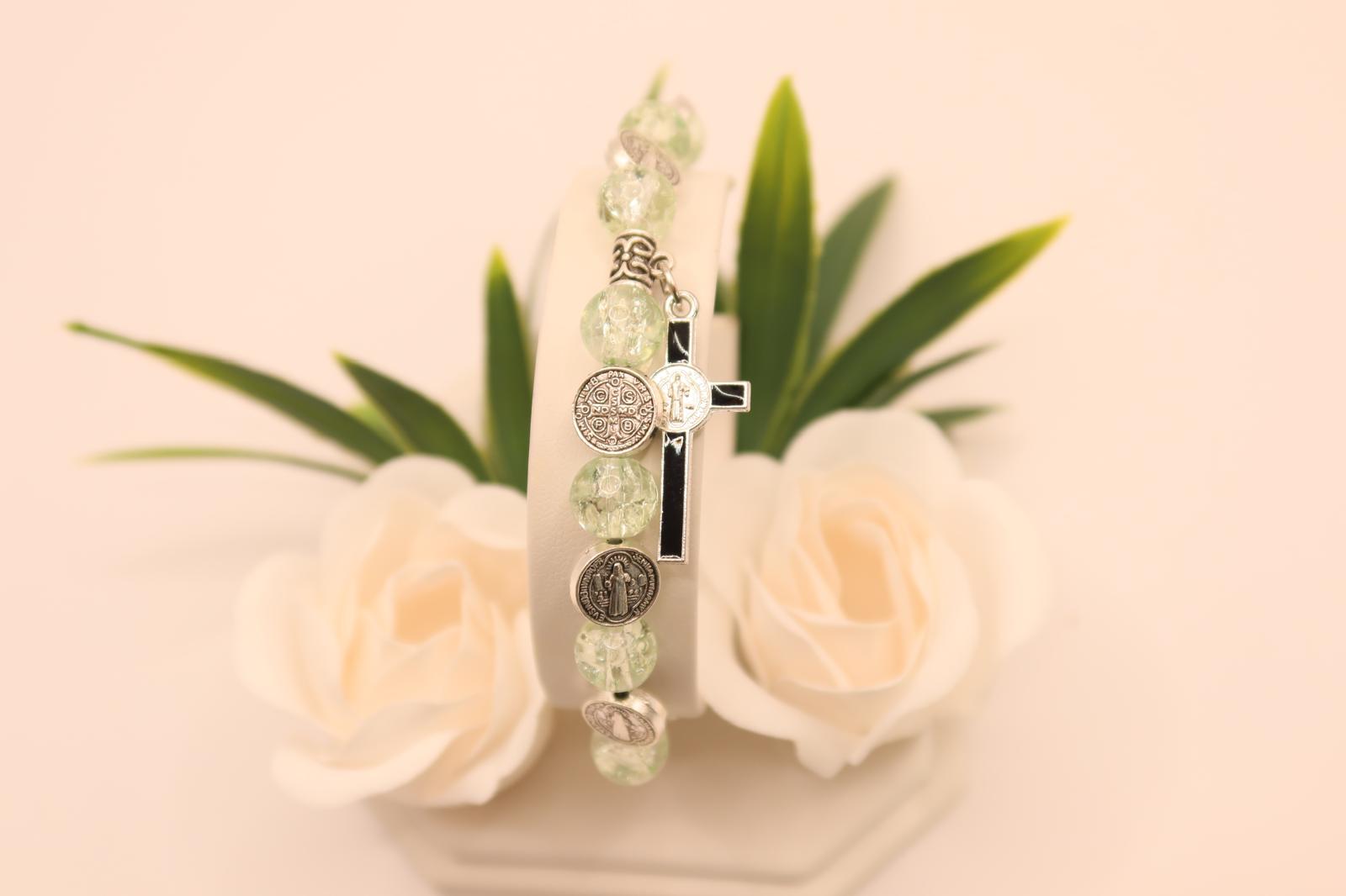 The Rosary of Saint Benedict bracelet is a versatile piece full of meaning for Catholics. With 8mm crystal beads, this bracelet is perfect for those looking for an elegant and religious accessory at the same time.