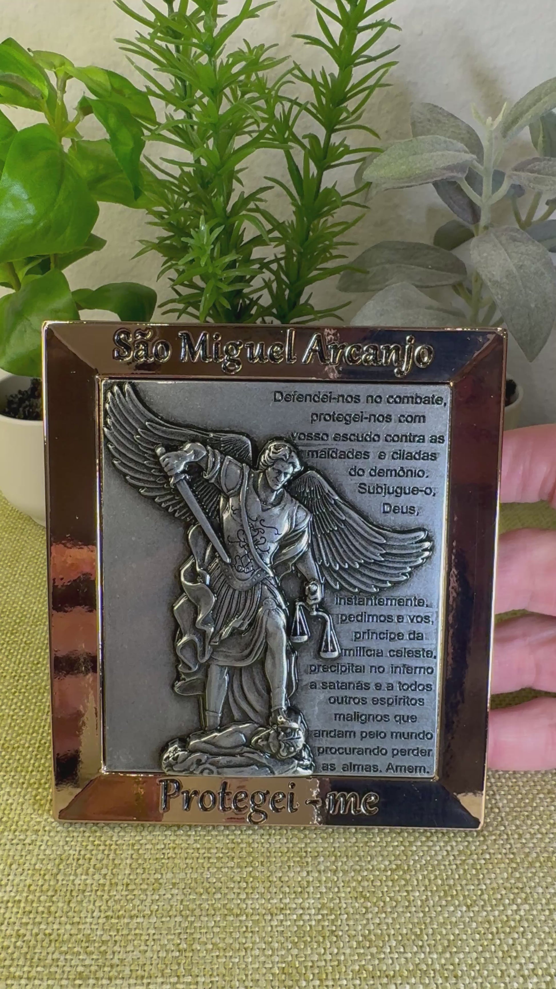 Table decoration Saint Michael the Archangel Picture with Prayer 12cm . Made of metal and with a look that brings unique artistic features, as well as a classic design combined with modern elements, it conveys beauty and refinement, without leaving aside its connection with faith. Developed in excellent quality material that guarantees greater resistance and durability.