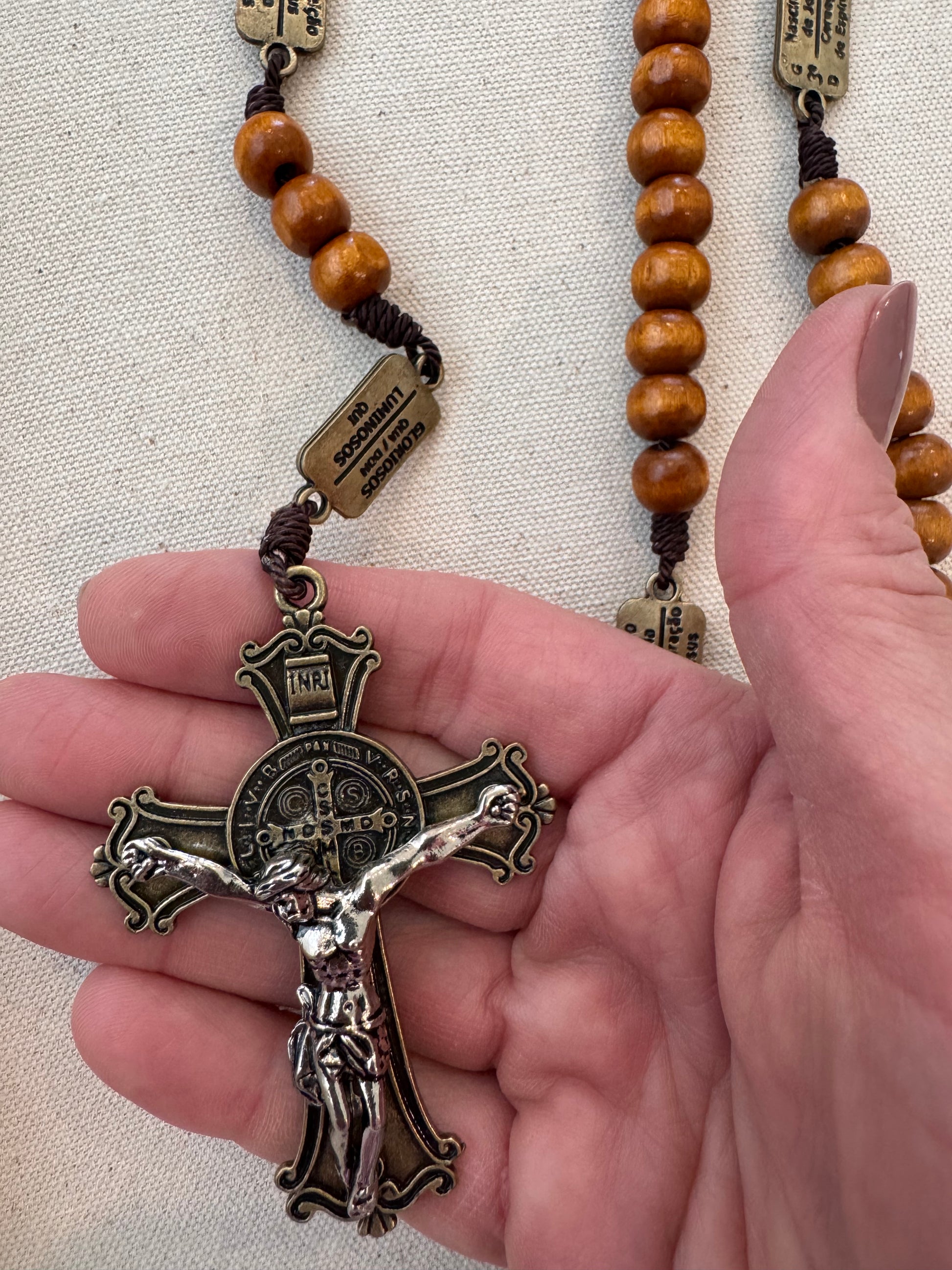 🔸 The crucifix bears the image of the Crucified Jesus ✝️, together with the powerful Medal of Saint Benedict , recognized as a sign of protection against evil.
