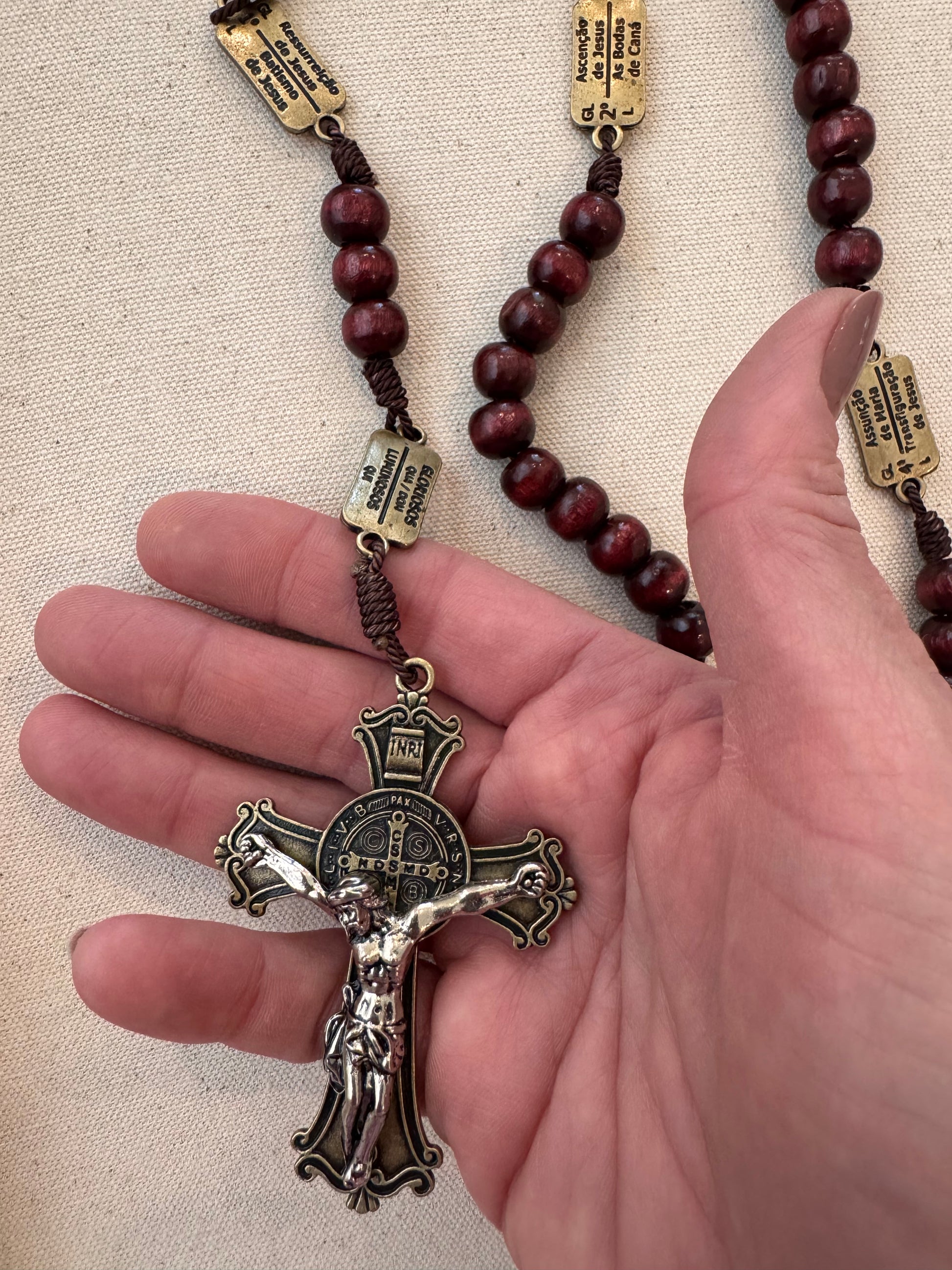 A rosary of faith and protection, handcrafted with wooden beads available in two colors: light and dark 🌿✨.