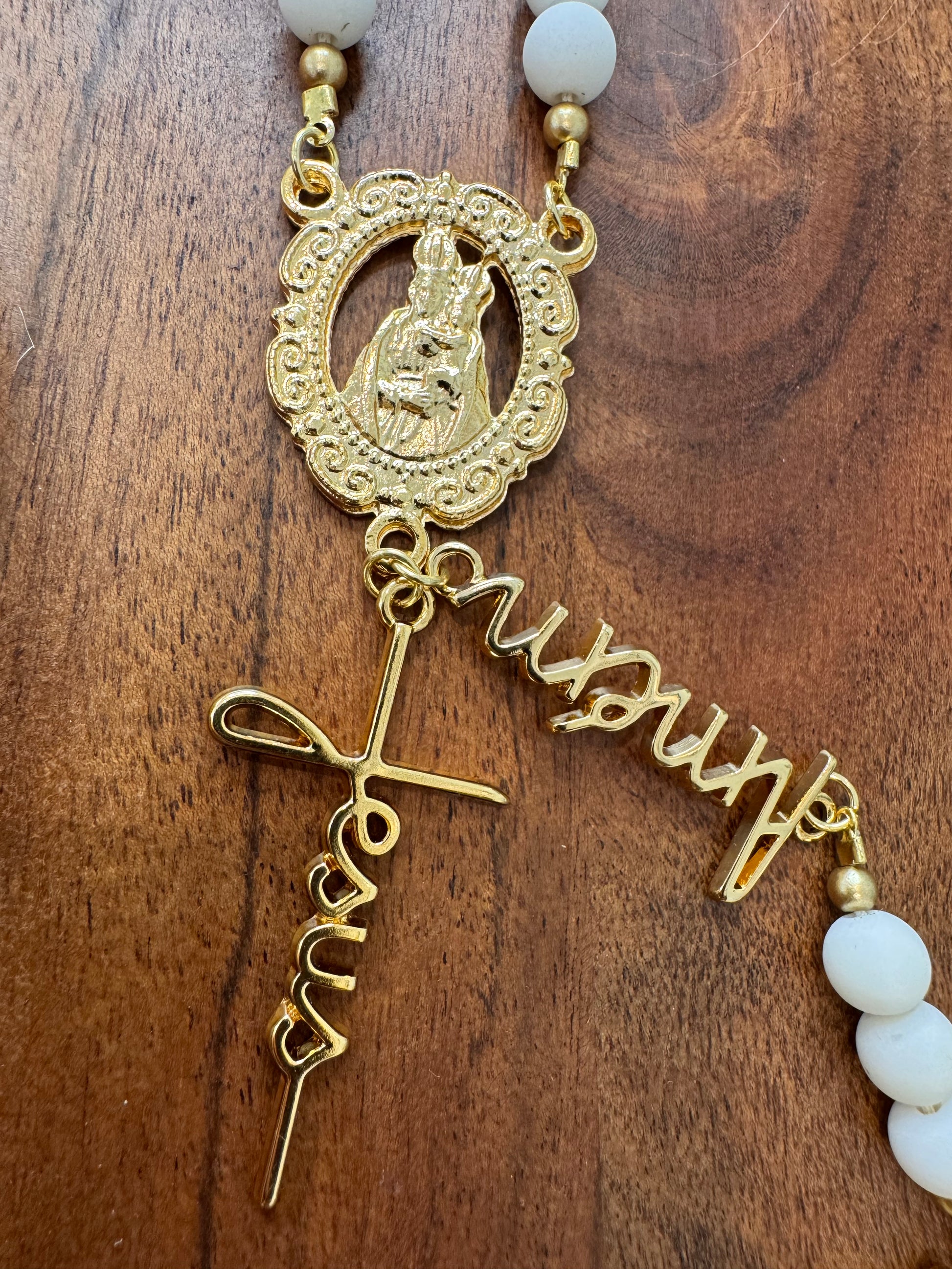The Amen Rosary is a special piece of devotion, available in two exclusive models: Sagrada Família and Nossa Senhora do Carmo . Each rosary is a true work of faith, with larger beads engraved with the word "Amen" , symbolizing the confirmation and consecration of prayers. The Jesus pendant at the end of the rosary reinforces the spiritual connection, reminding us of the divine presence in each prayer.