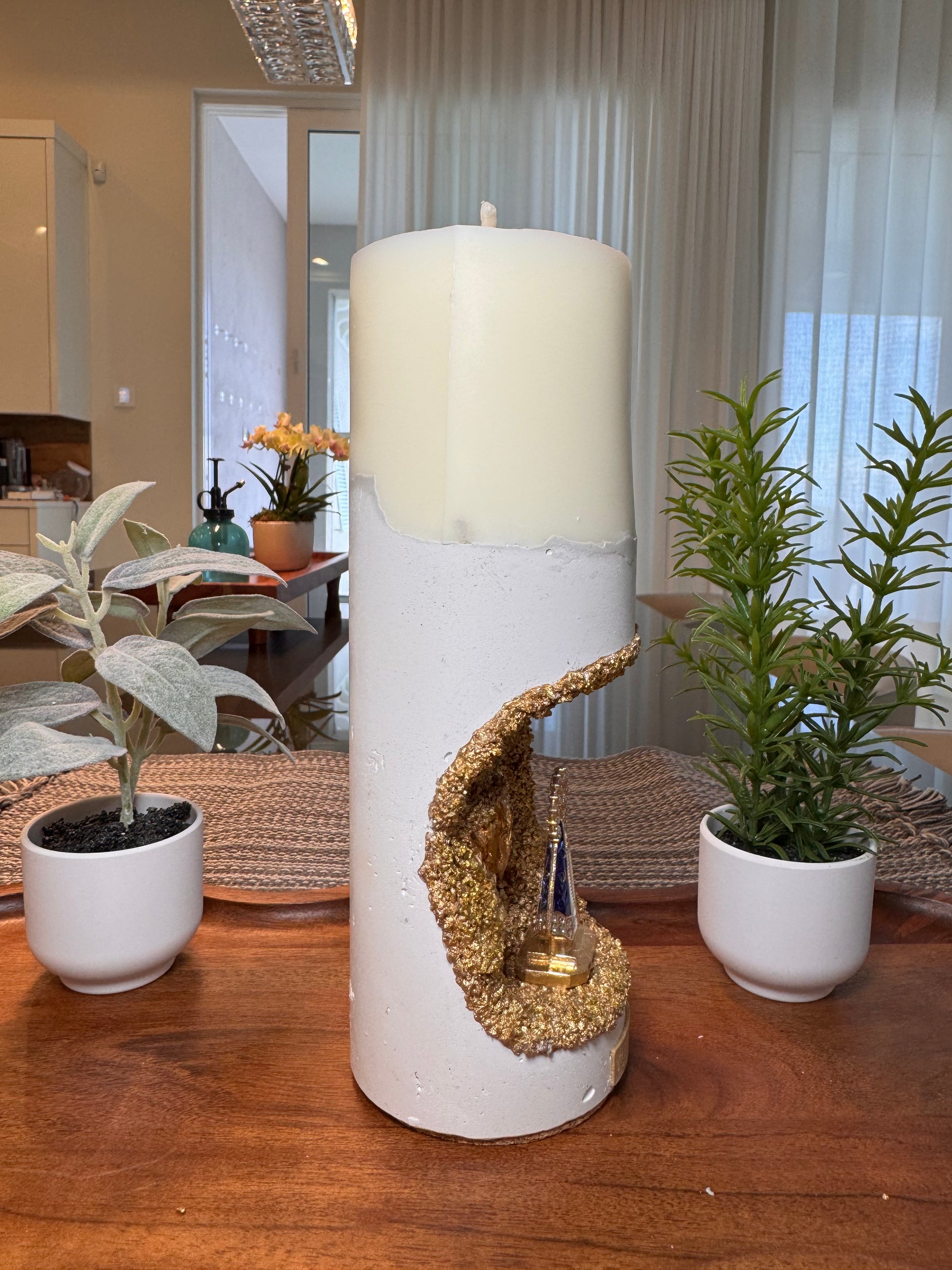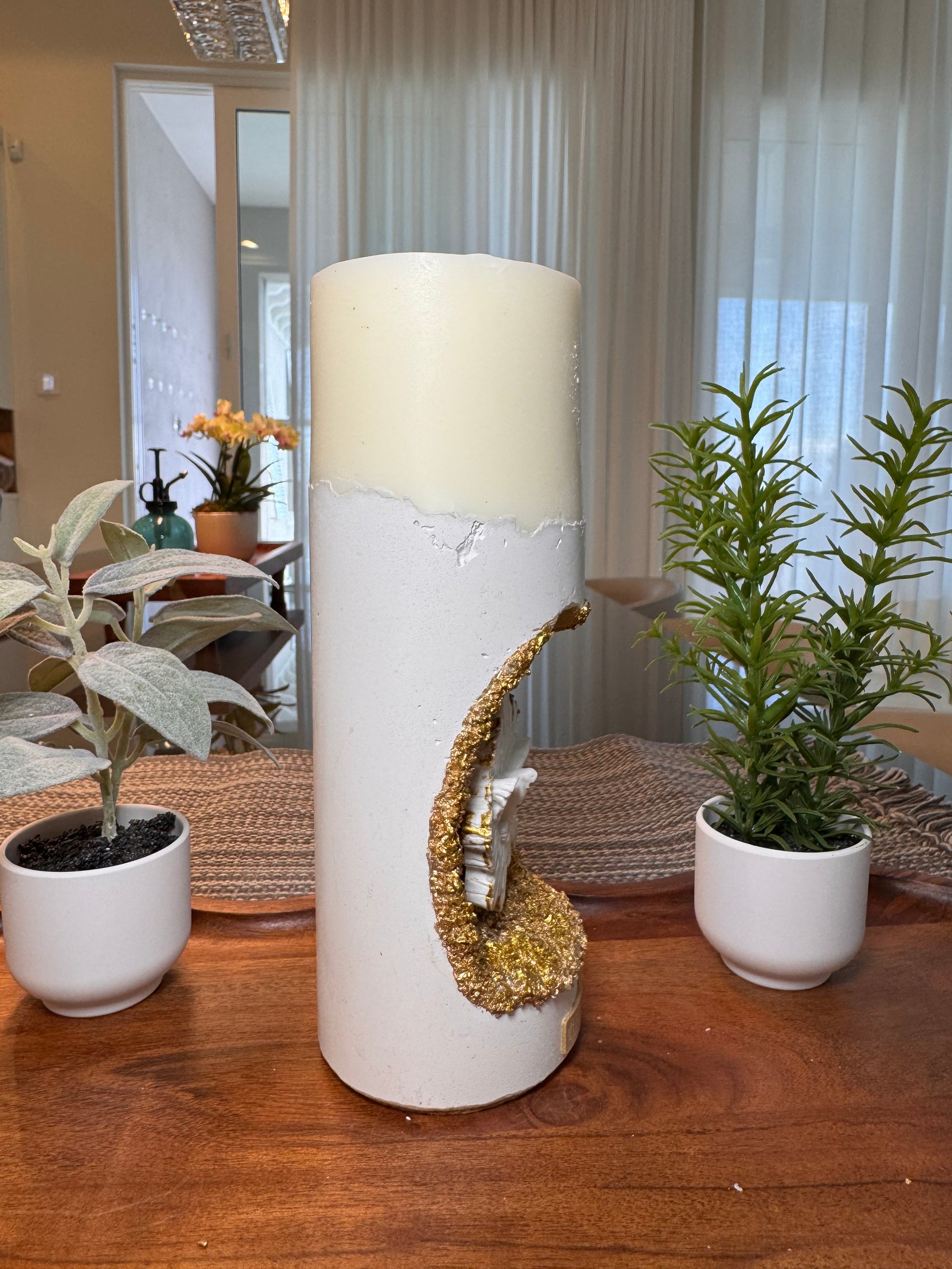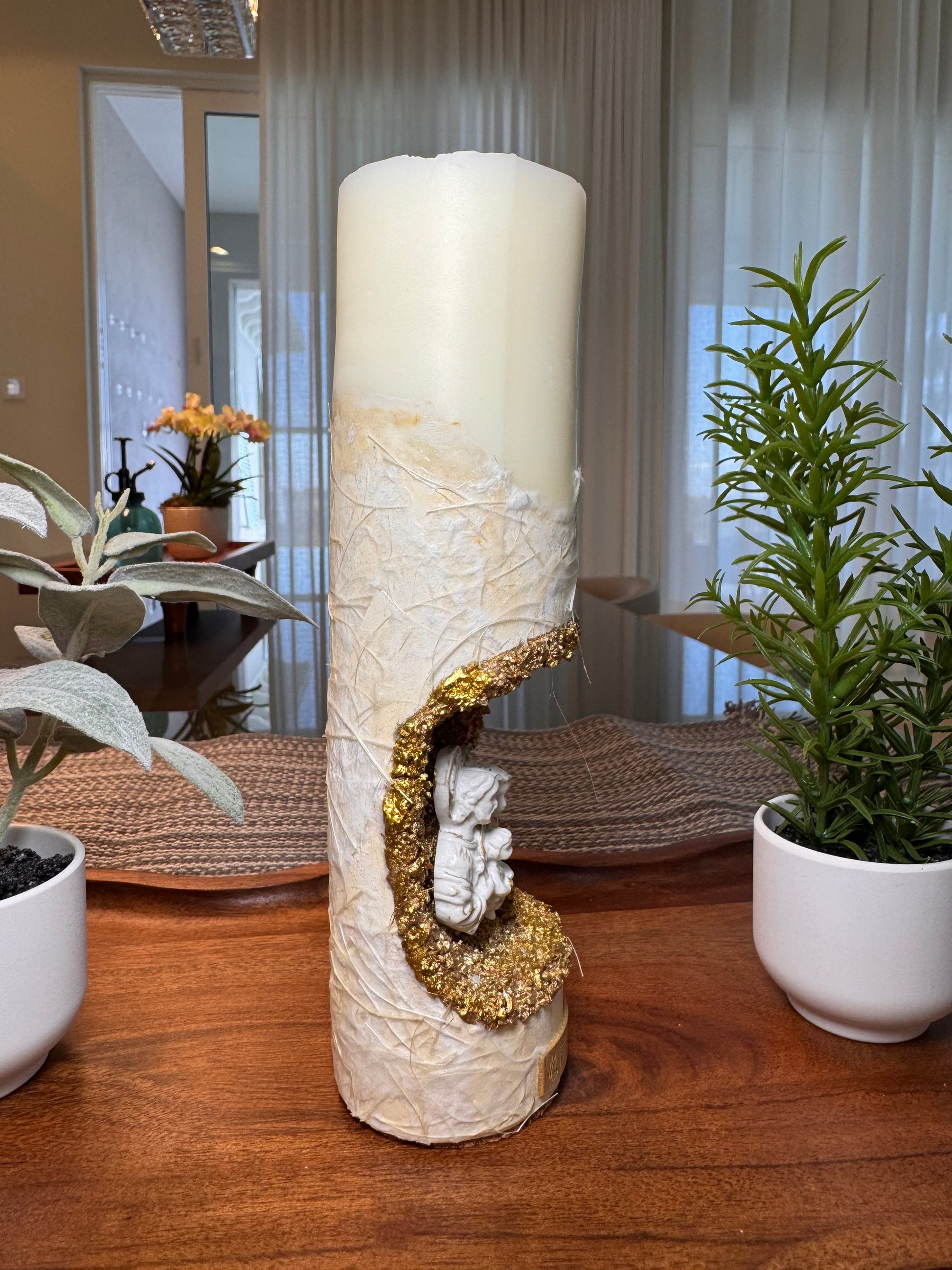 Handmade candle made with a blend of 100% vegetable waxes and 100% cotton wick.