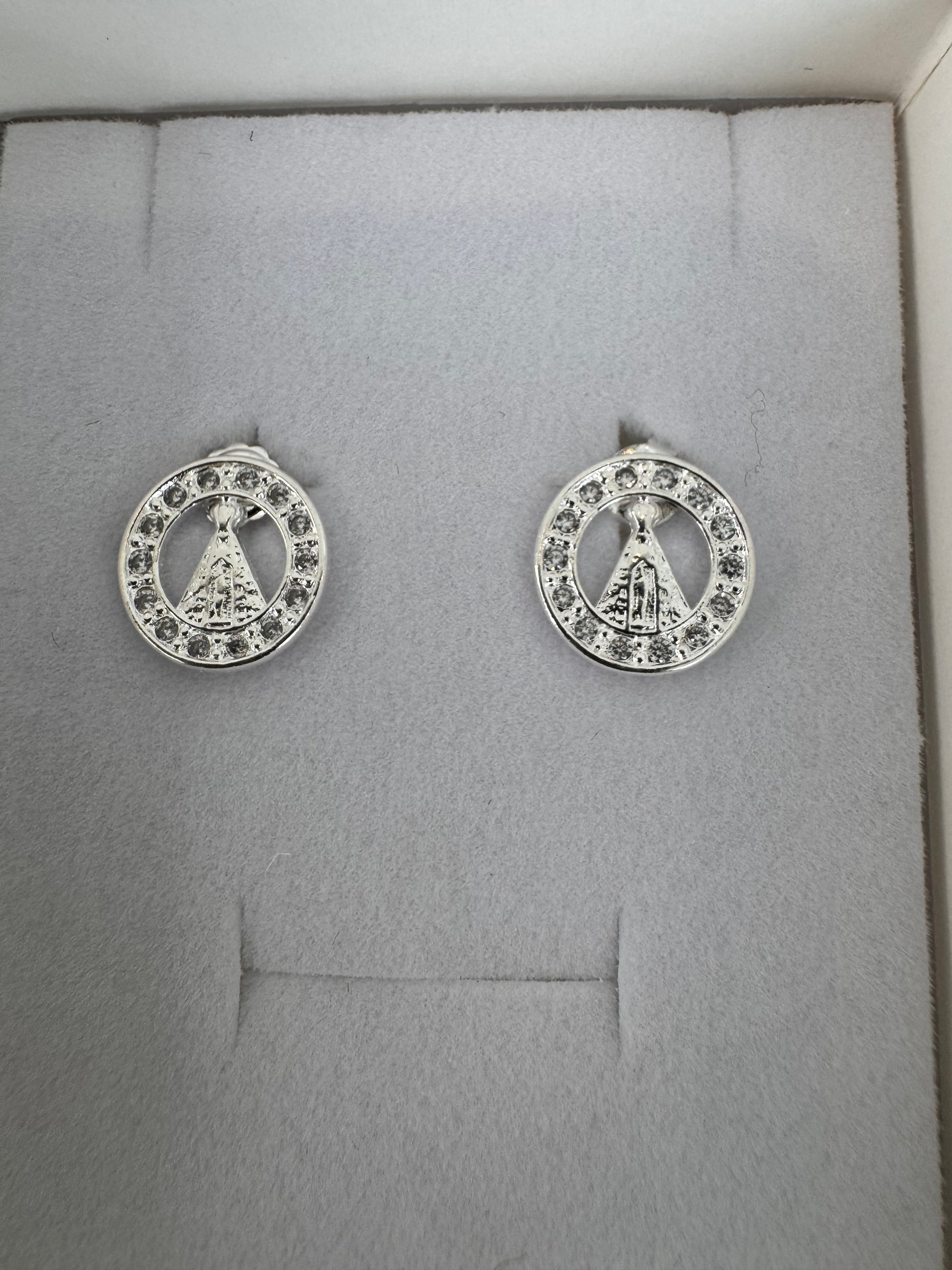 Brinco Nossa Senhora Aparecida com Zircônias Redondo Aro – Semijoia