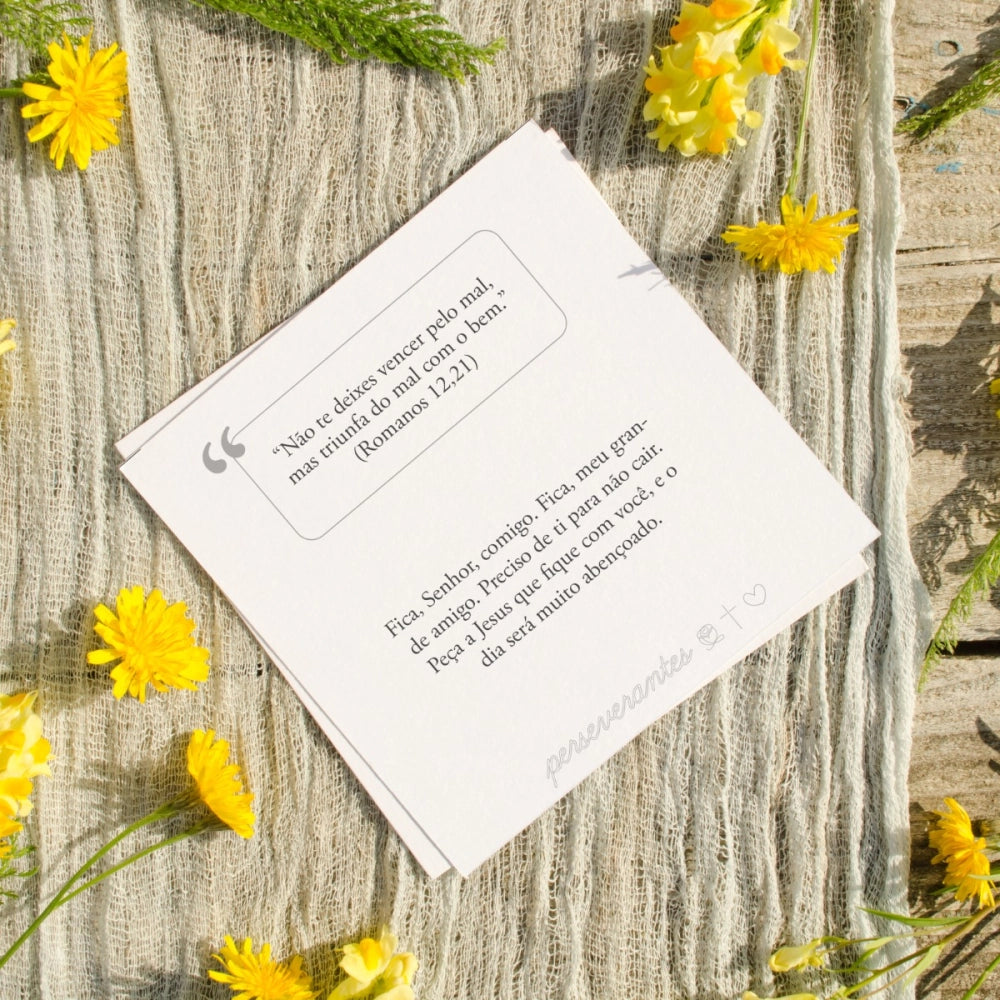 Com 170 mensagens cuidadosamente selecionadas, cada cartinha retirada se torna um encontro pessoal com o Senhor. São reflexões que ajudam a renovar a esperança, fortalecer o coração e recordar que a perseverança é o caminho seguro para uma vida ancorada em Deus.