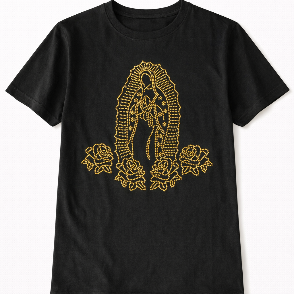 Camiseta Nossa Senhora de Guadalupe em Strass – Amor e Proteção Materna (Unisex)