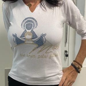 Com a delicadeza de quem aprecia o conforto e a sofisticação, a Blusa Brilho Manga 3/4 é a união perfeita entre leveza e estilo.