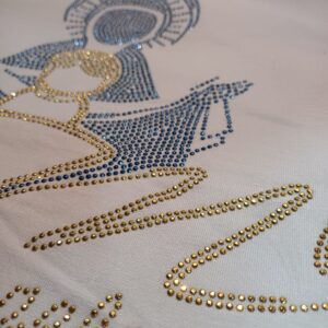Não passe o ferro sobre as pedrarias e evite o uso de alvejantes.