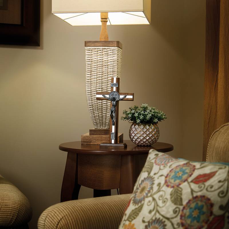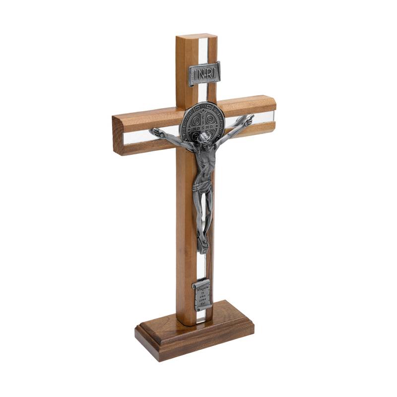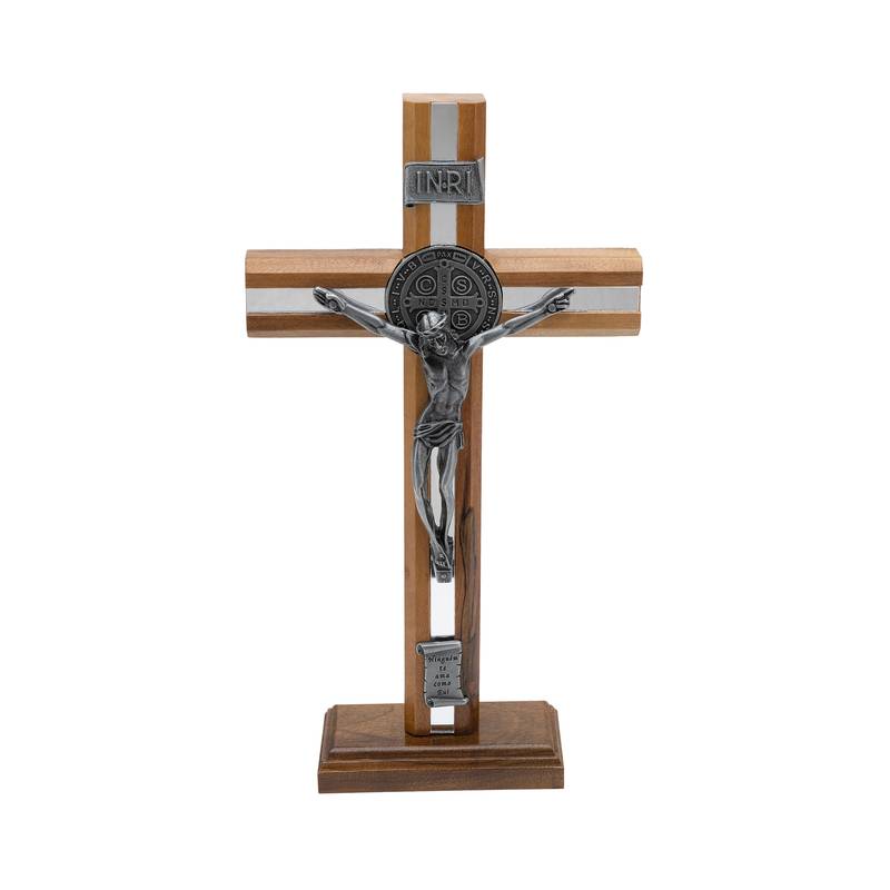 O Crucifixo de Mesa em Madeira Frisada com Medalha de São Bento é um poderoso símbolo de fé, proteção e confiança na vitória de Cristo sobre todo o mal. Com 26 cm de altura, esta peça foi cuidadosamente elaborada para ser um sinal visível da presença de Deus em ambientes de oração, escritórios, mesas de trabalho ou lares.