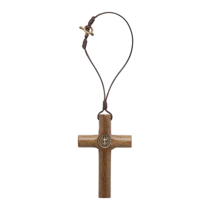 Cruz para Carro com Medalha de São Bento – Madeira Natural