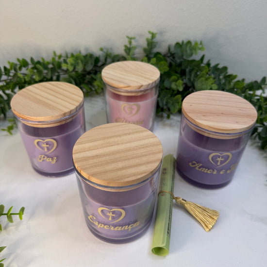 Cada kit inclui 4 velas aromatizadas, disponíveis em dois tamanhos:
