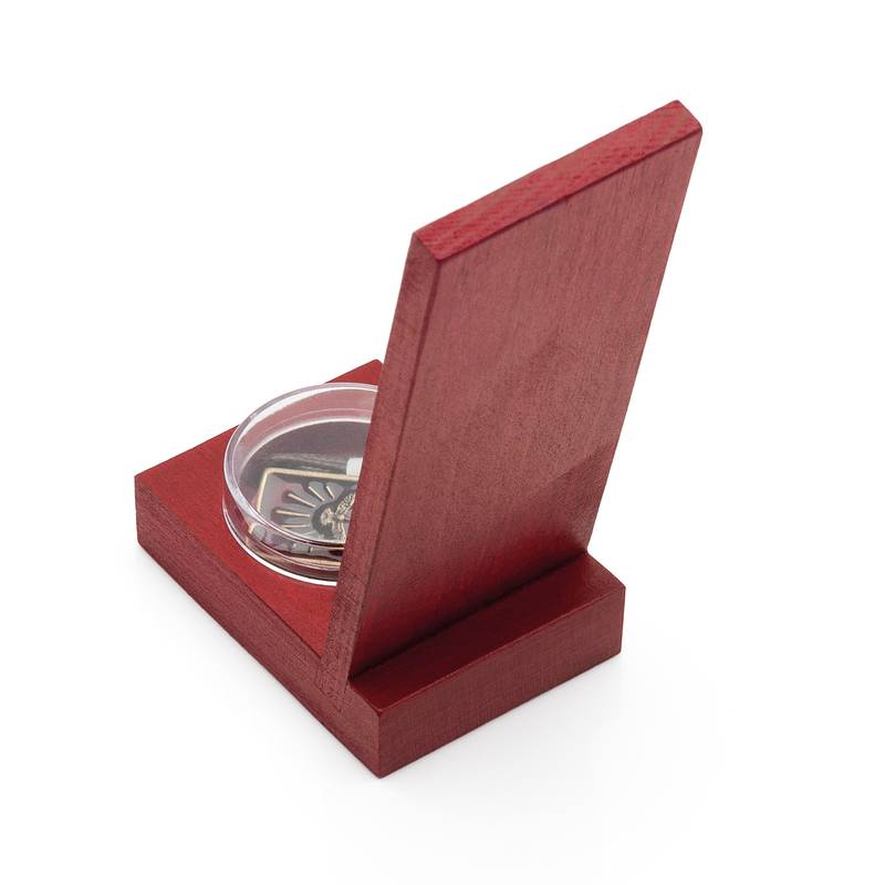 Feita em madeira vermelha rústica, esta peça vertical carrega presença, simbolismo e uma beleza simples, porém profundamente espiritual.