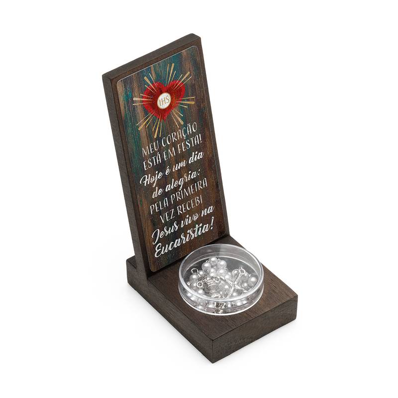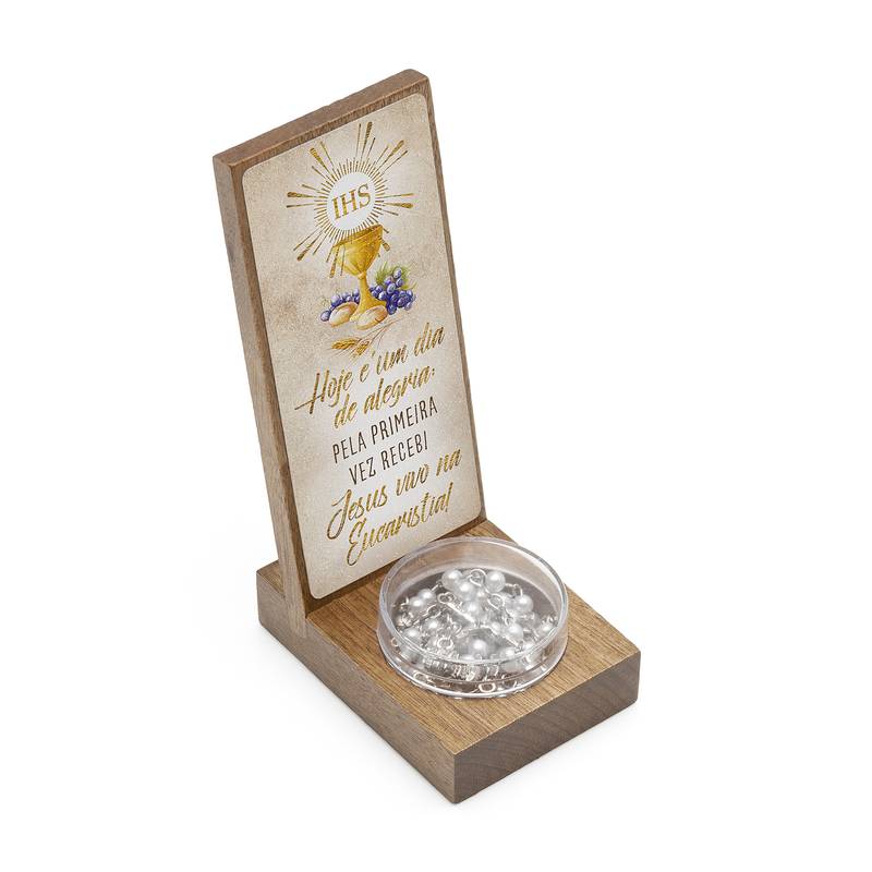 Uma lembrança cheia de significado, beleza e espiritualidade — criada para celebrar o grande mistério da Eucaristia, onde Jesus se faz presença viva, real e amorosa.