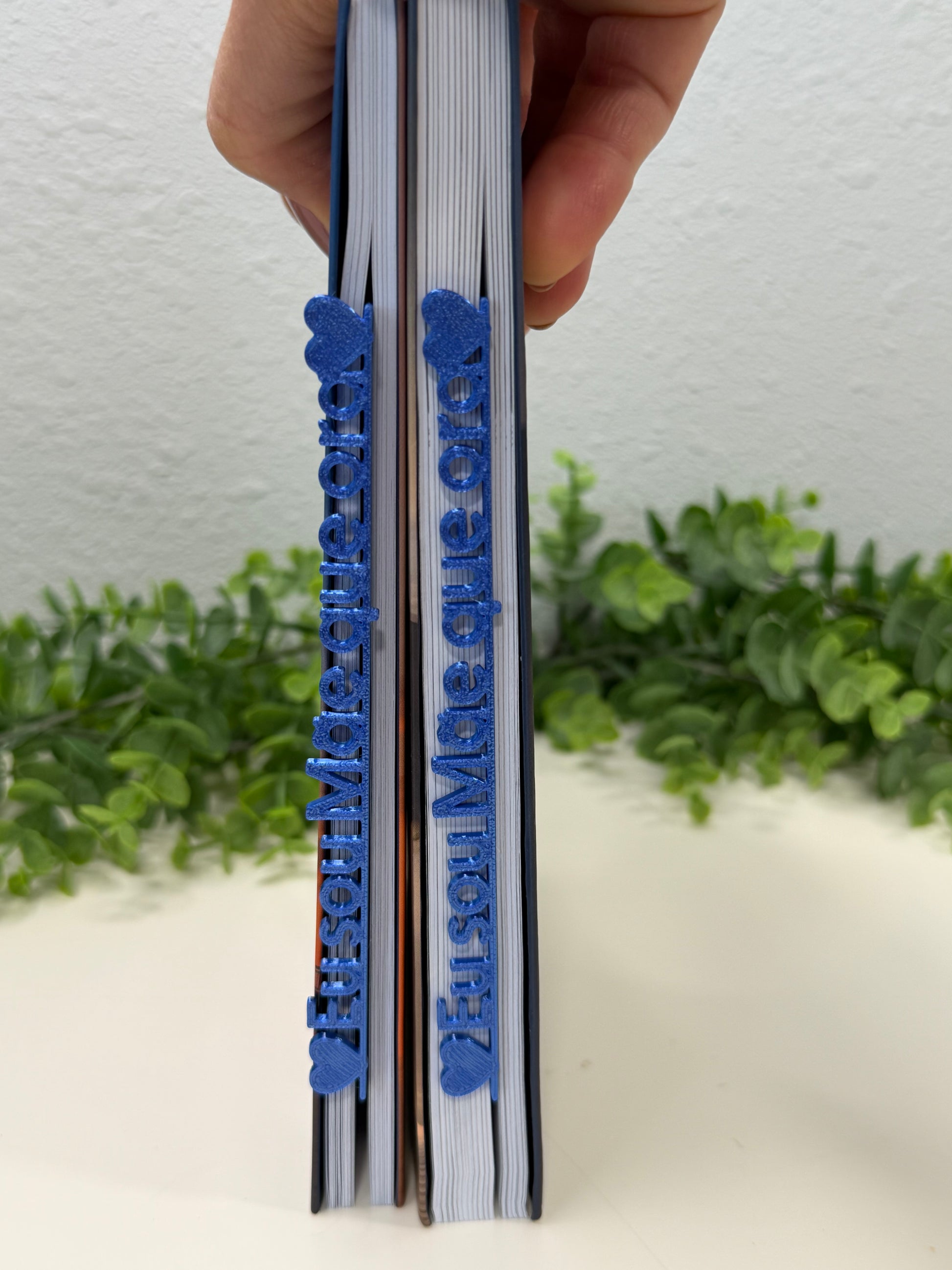 Produzido com muito carinho em PLA Silk+, possui um acabamento delicado e elegante, com brilho suave que valoriza cada detalhe da peça. Seu design permite encaixar perfeitamente no livro, deixando a frase em destaque — como um lembrete constante da missão de confiar, rezar e entregar.