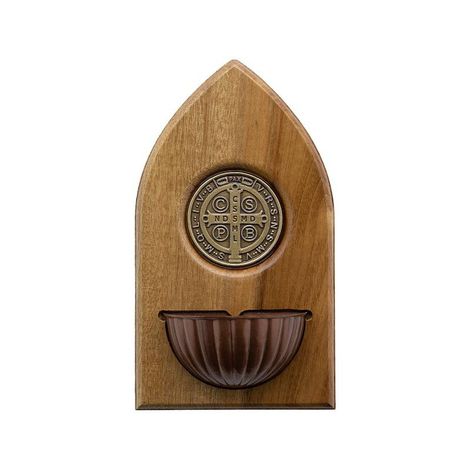 A cavidade frontal comporta água benta, usada para oração, proteção e consagração, transformando a peça em um símbolo de cuidado espiritual para toda a família.