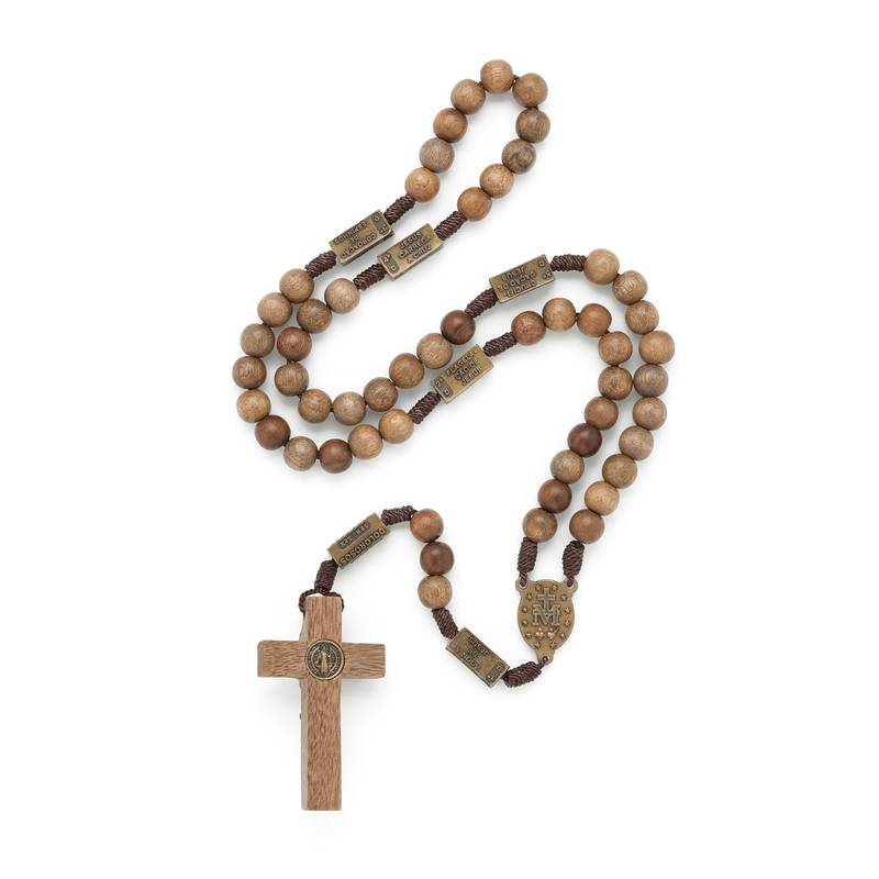 Terço de Madeira Imbuia com Mistérios em Metal – Contas 10 mm